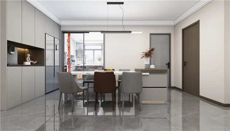 客餐厅的一体化设计突破了传统的壁垒,将空间完美的衔接在一起,塑造了整体的和谐质感,通透的光线是此处高品质生活的象征,无形中传递了更多的生活美学,功能性和美观性是空间最基础的所在,极大的彰显了空间的生活格调。