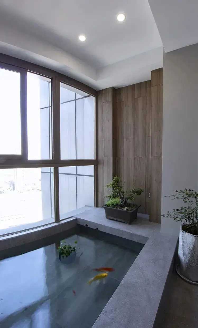 在玄关靠窗的位置设计了鱼池,让人一回家就感觉到生机勃勃。