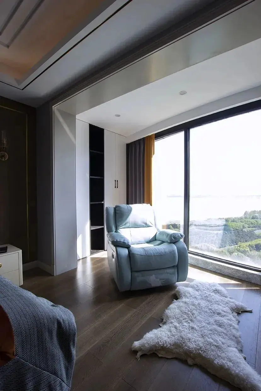 阳台封闭起来纳入主卧空间,摆上一张按摩椅,为主人提供了一个舒心轻松的享受位置。