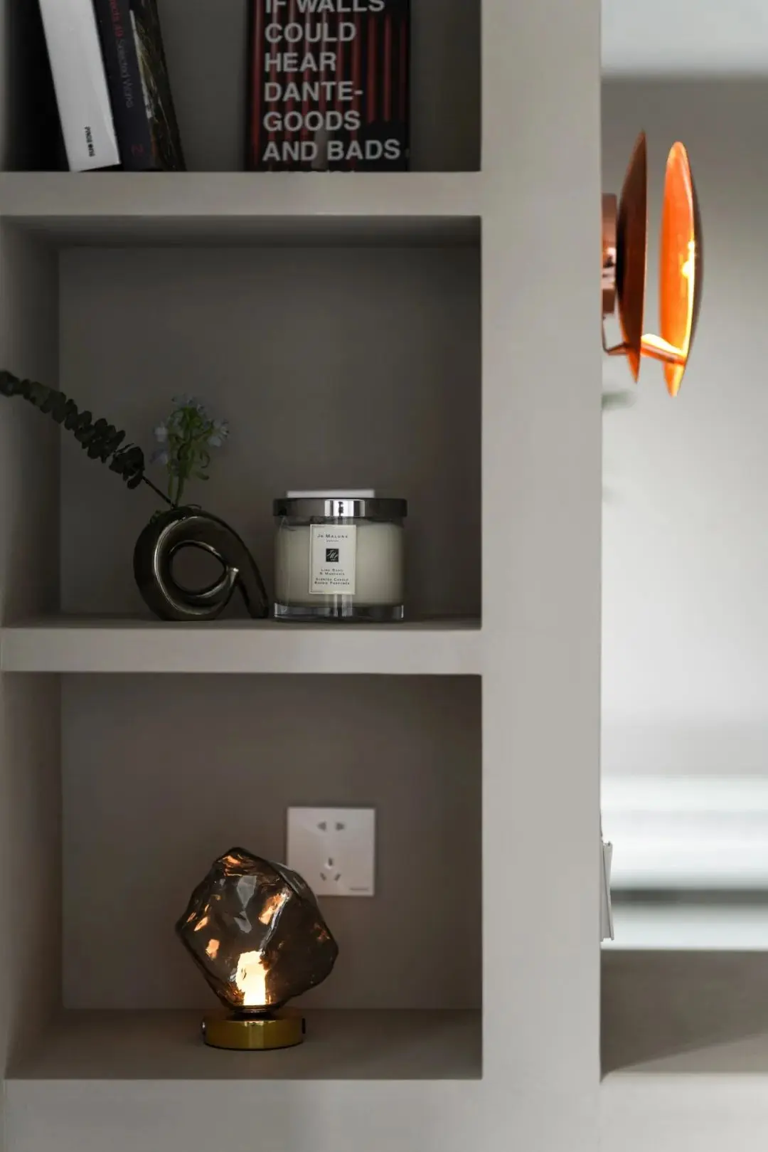 如果是上下分体的玄关柜,建议在中间台面的上方预留1-2个五孔插座,以供充电宝、智能手环、感应灯等充电;