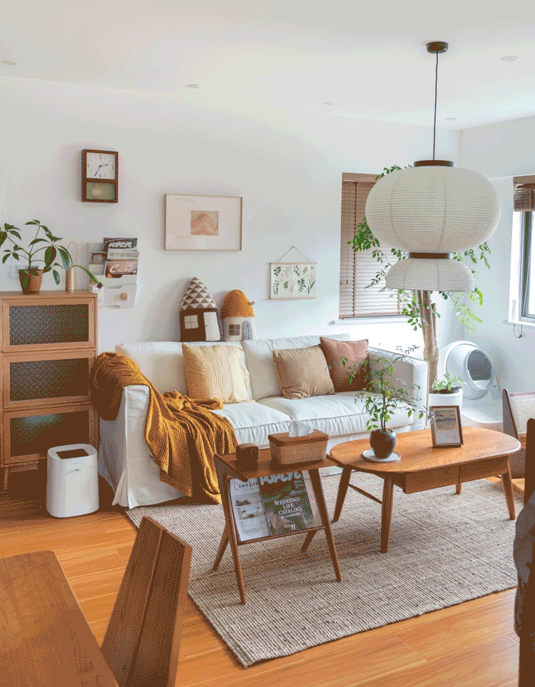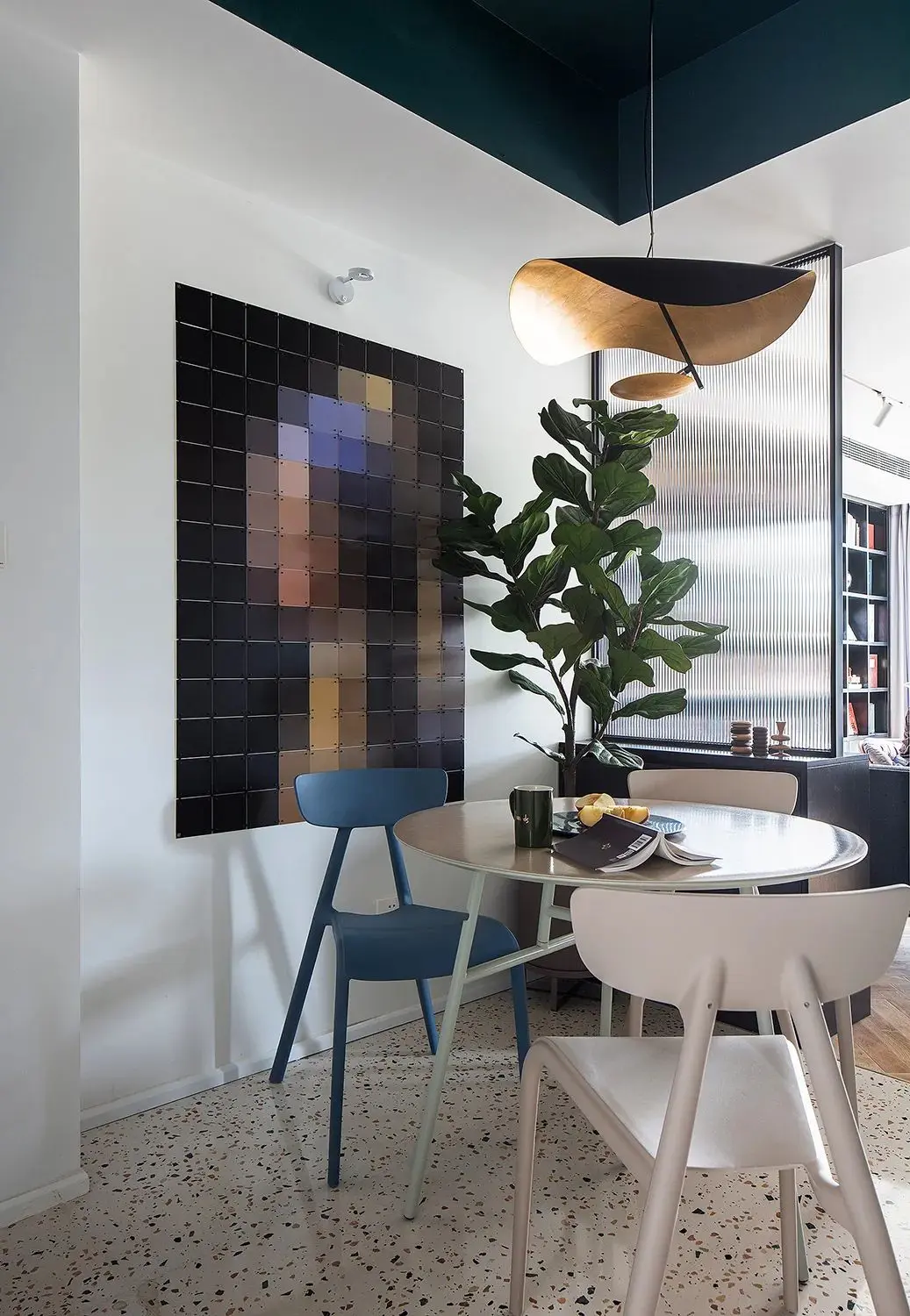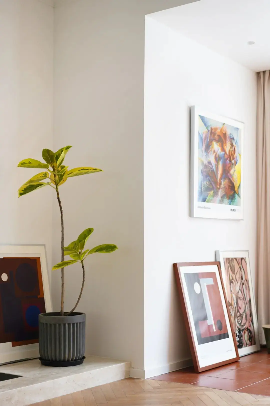 最后,选择点缀色,占比5%,主要用于家里的装饰品:装饰画、绿色植物、靠垫、落地灯等。尽管不是绝对的主角,但如果加点小心思,也是空间里的点睛之笔。