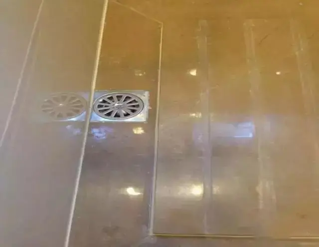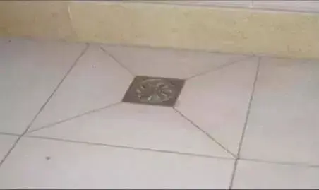 (2)采用四边倒八字角方式拼花地漏时,地漏需居中,返水方向明显。