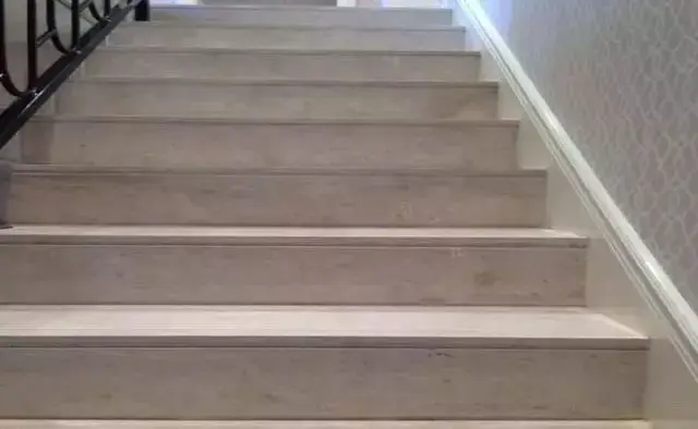 (6)楼梯踢脚线表面平整,突出墙面厚度一致,线条整齐,无色差;