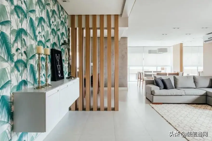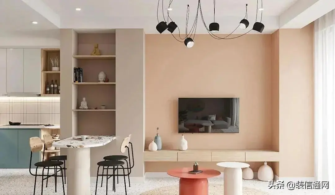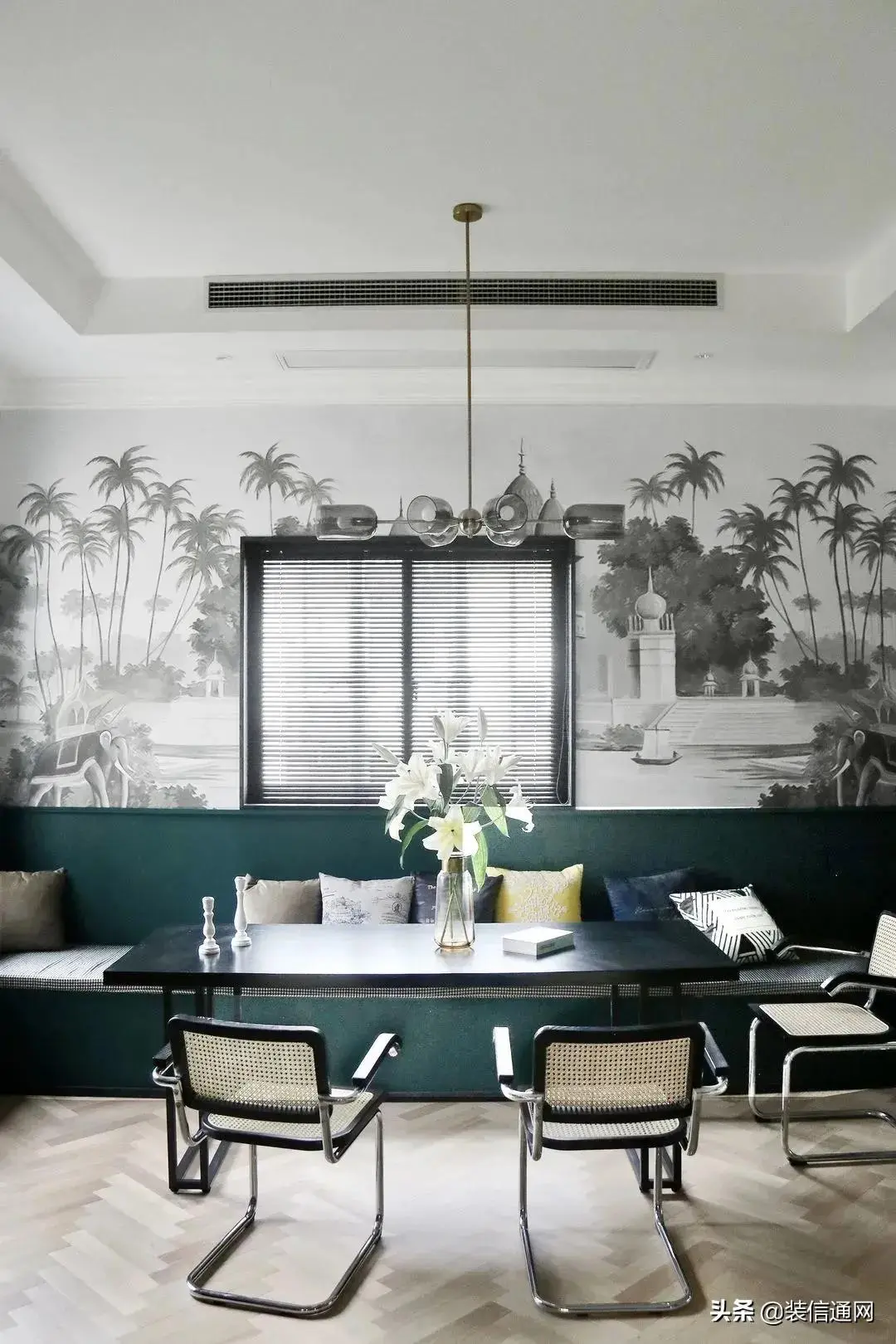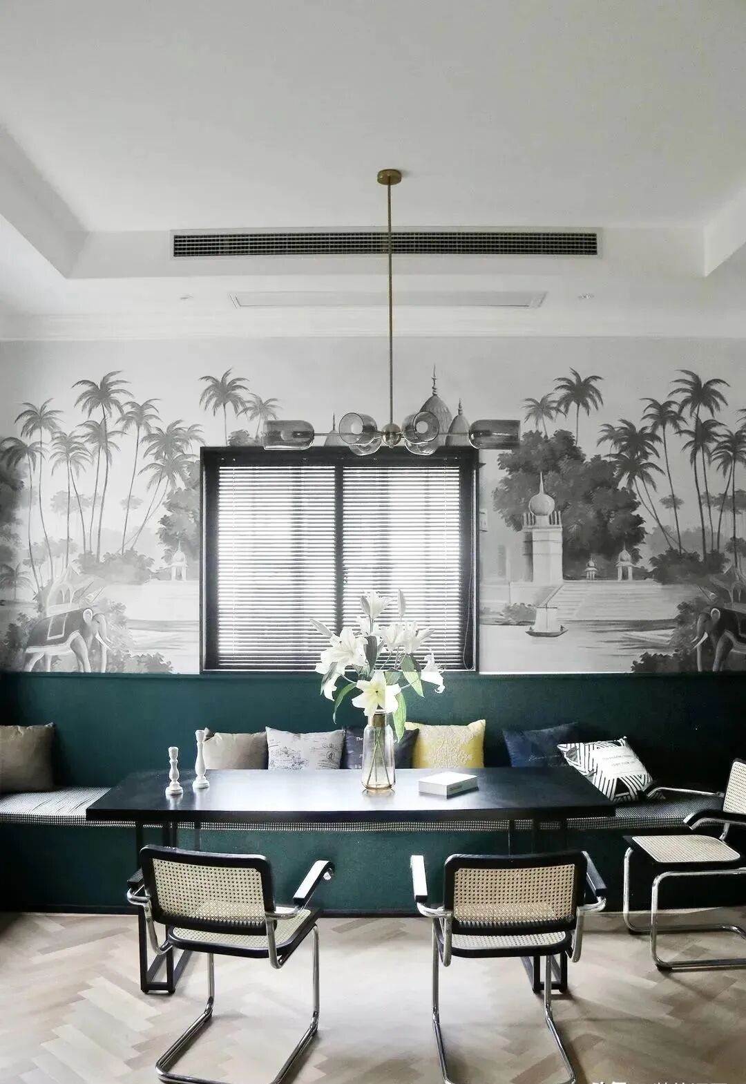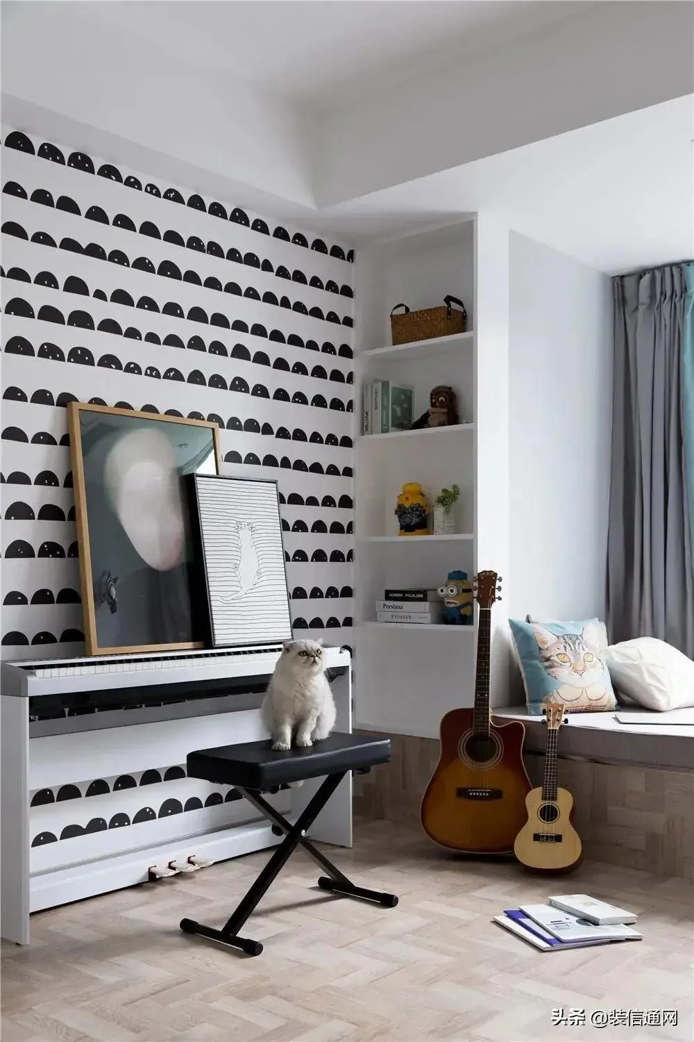 贴壁纸可以轻松利用图案,这个乳胶漆很难实现的效果,去达到需要的效果。