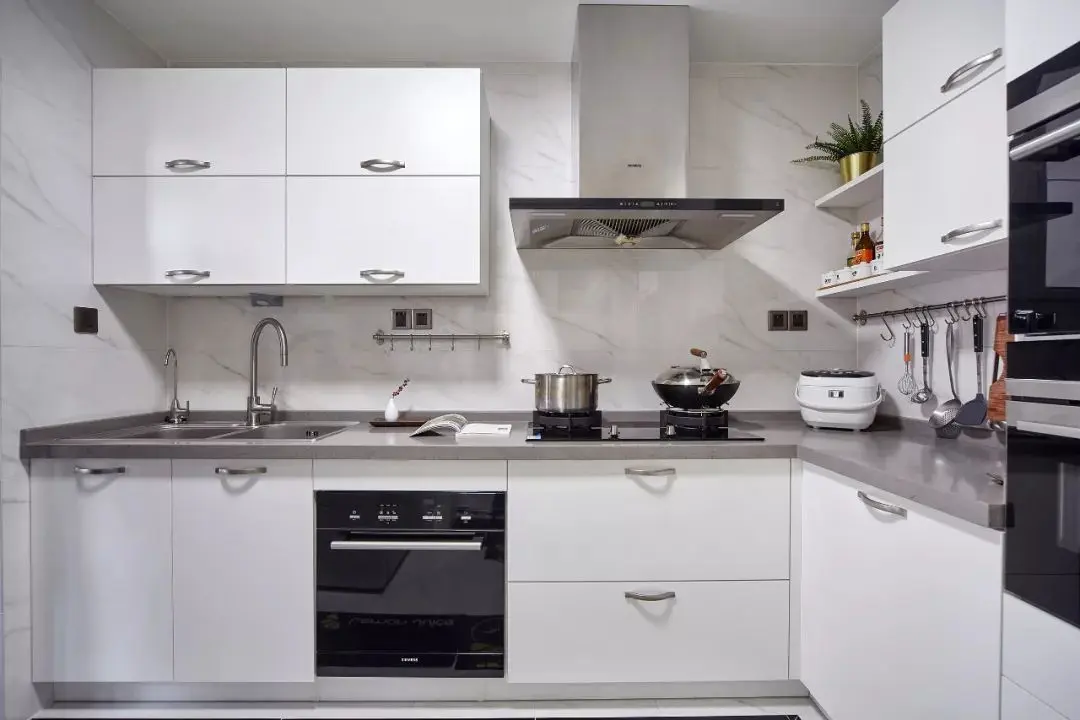 无论Ⅰ型、Ⅱ型、L型、U型橱柜布置都要考虑动线。如果户型条件允许,推荐U型布局,可用台面长,方便按顺序布置洗、切、炒区域。