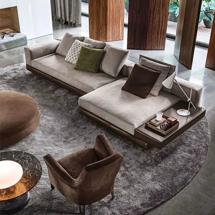 如果是喜爱阅读的业主,也可以在边几上搁置常看的书籍,还可以选择带有边柜台面的沙发,更加方便实用。