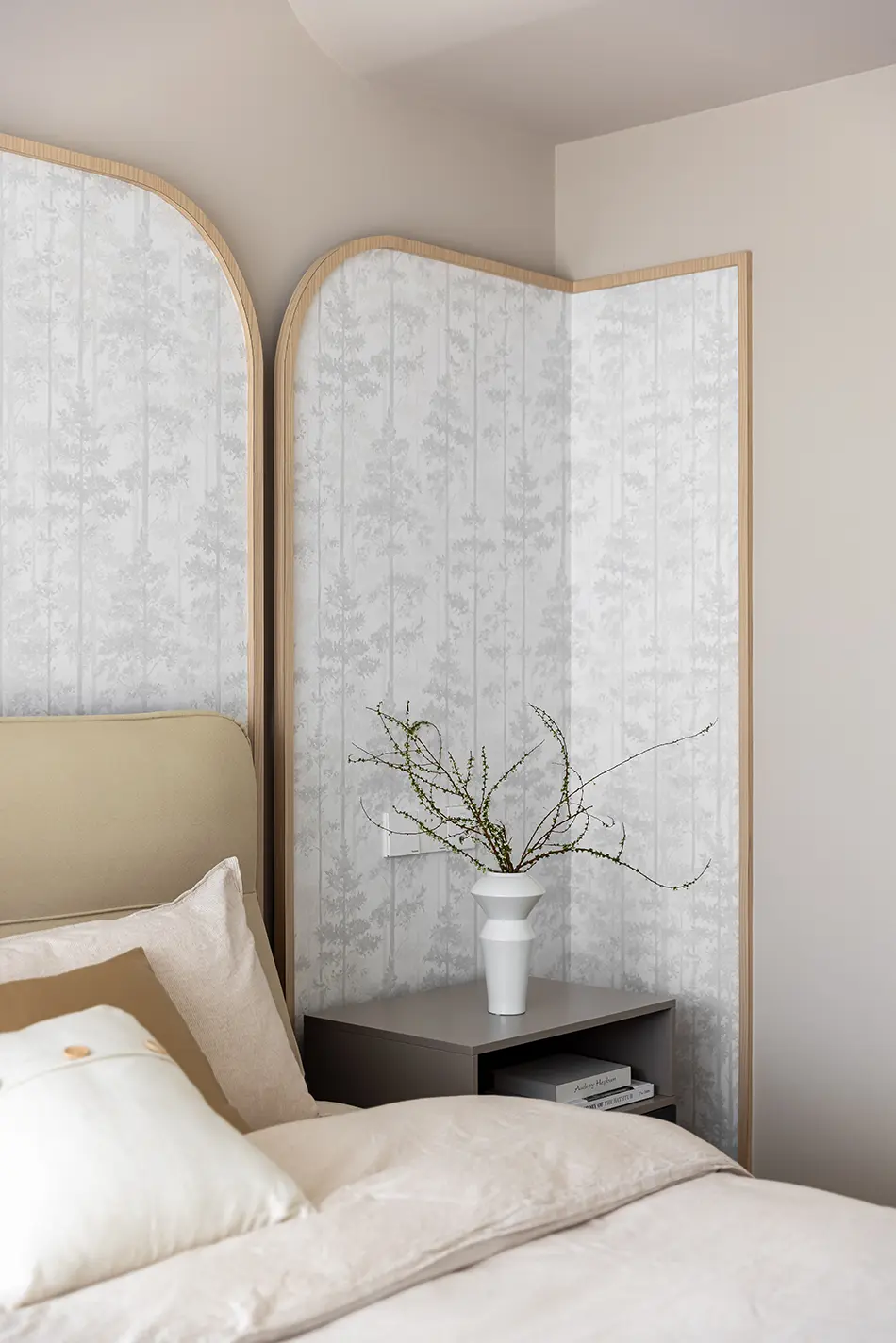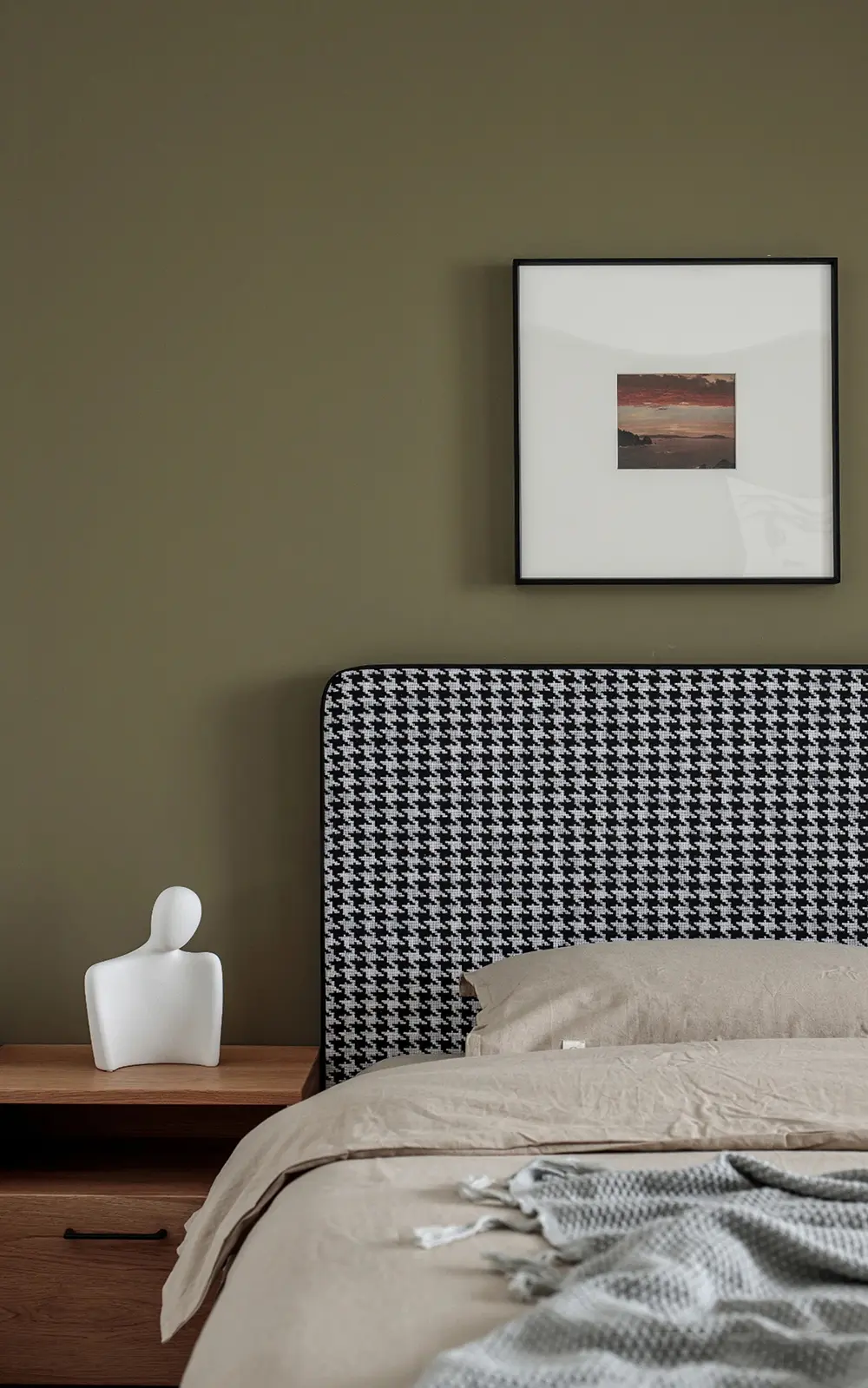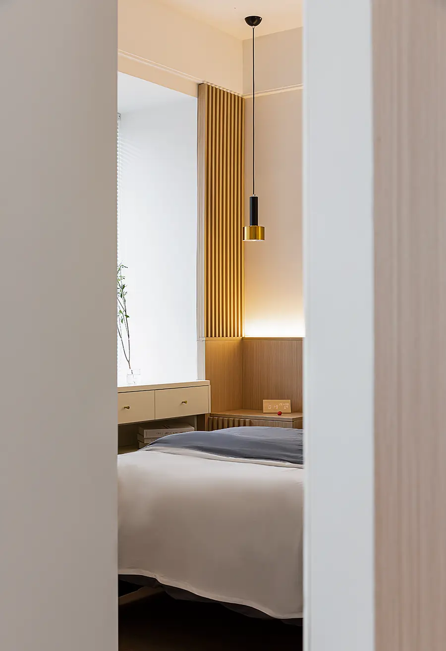 主卧以奶茶色为空间的主色调,它呈现出来的气质,它像一杯奶茶一样,又奶又甜,但又不会过于张扬,最适合用来展现一种恬静、温婉的高级感。