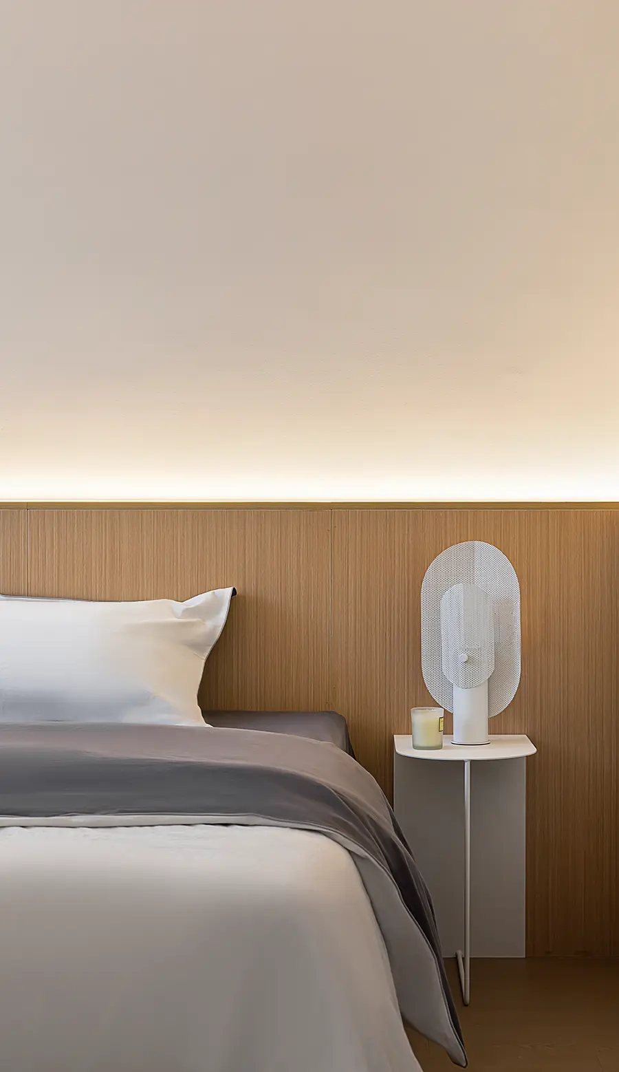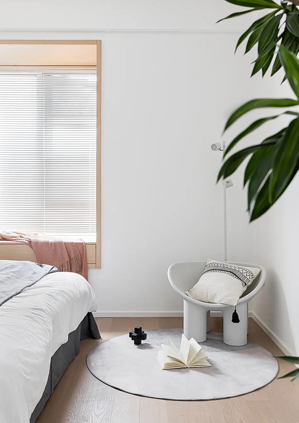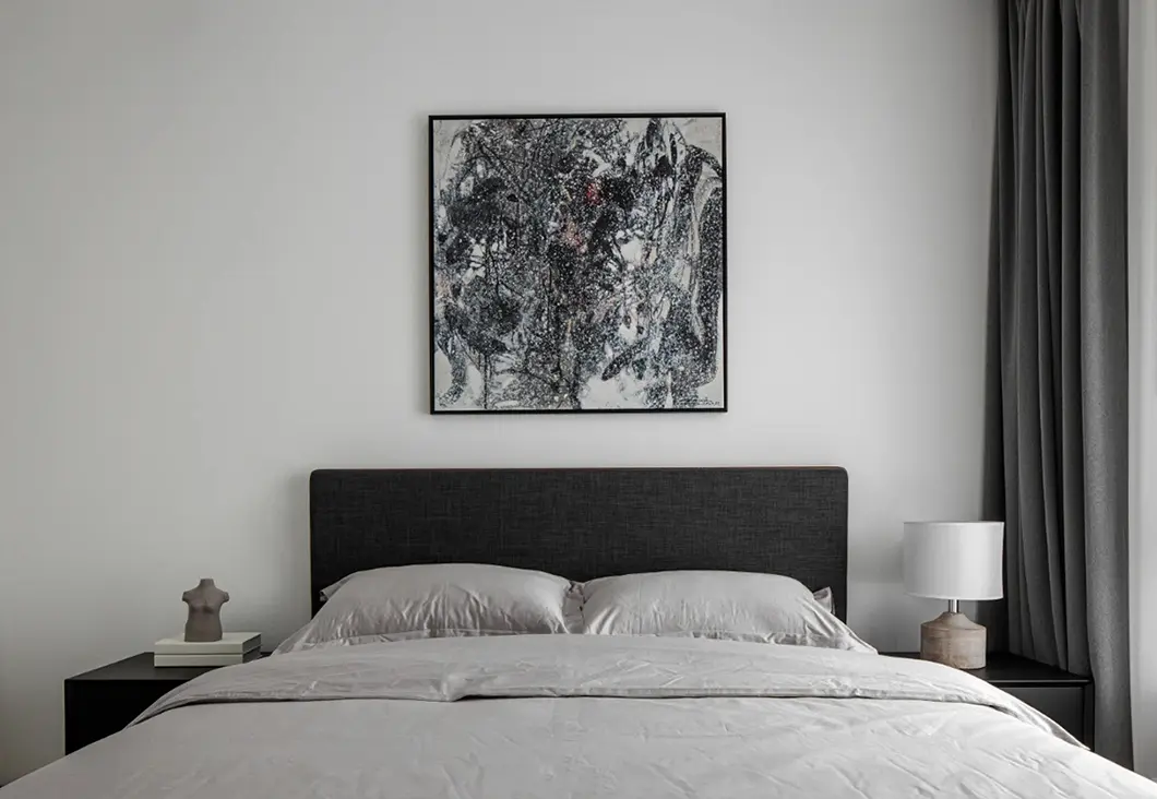 主卧以奶茶色为空间的主色调,它呈现出来的气质,它像一杯奶茶一样,又奶又甜,但又不会过于张扬,最适合用来展现一种恬静、温婉的高级感。