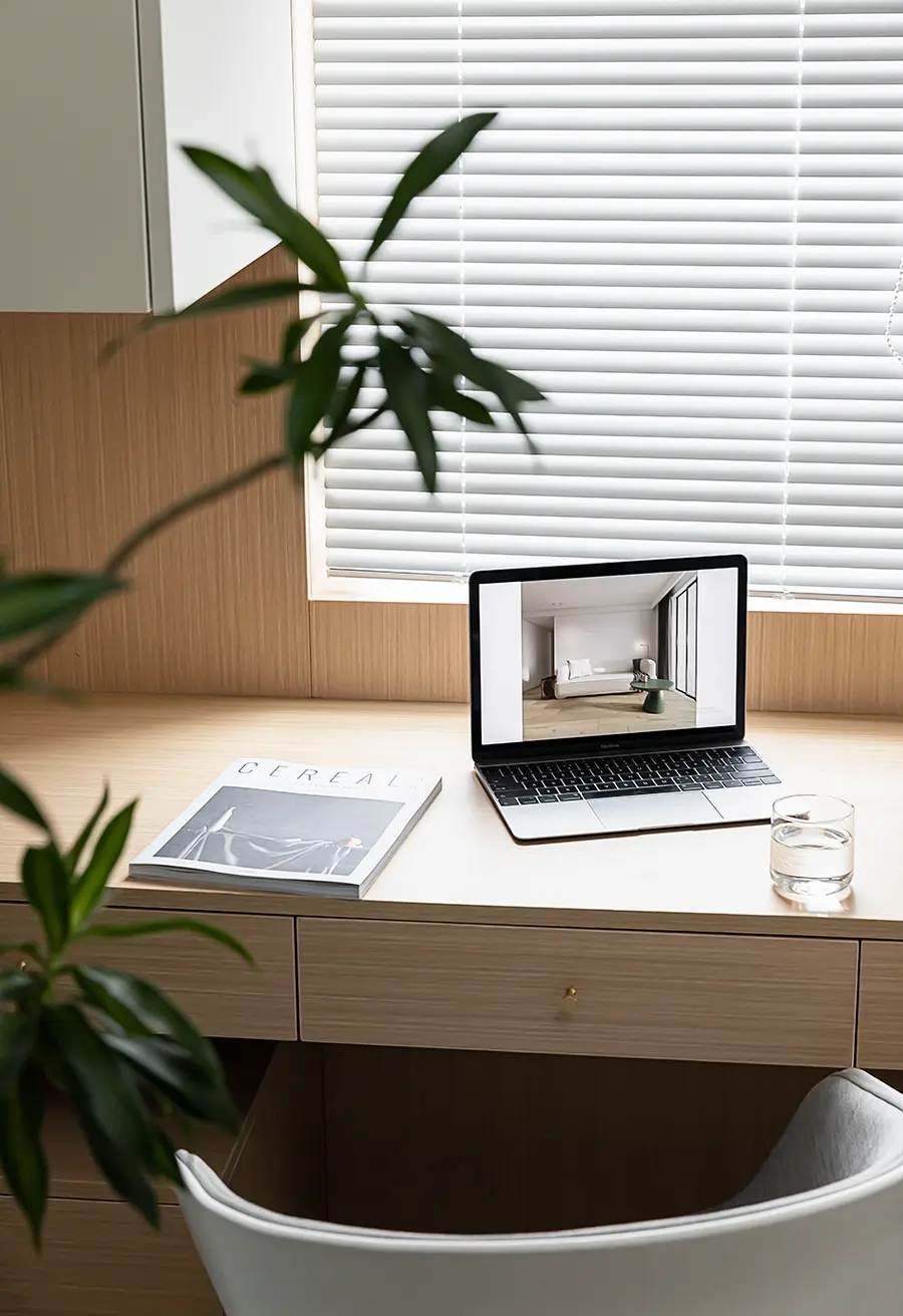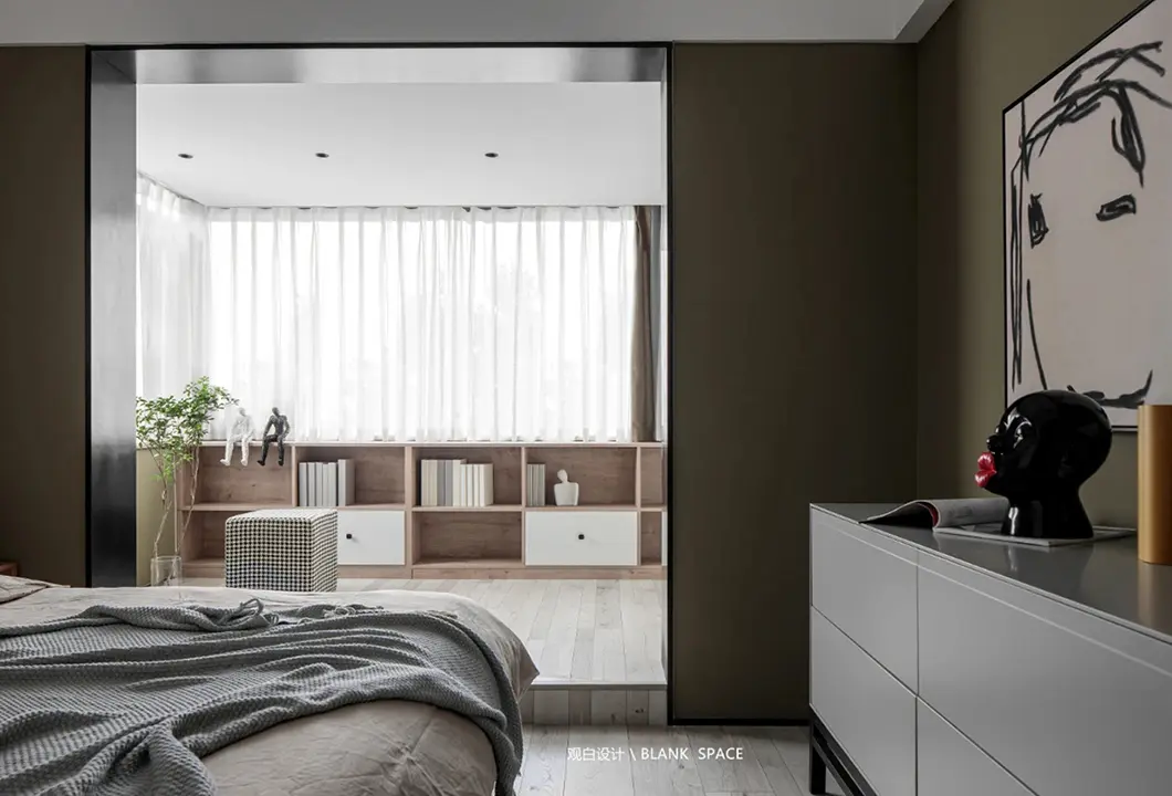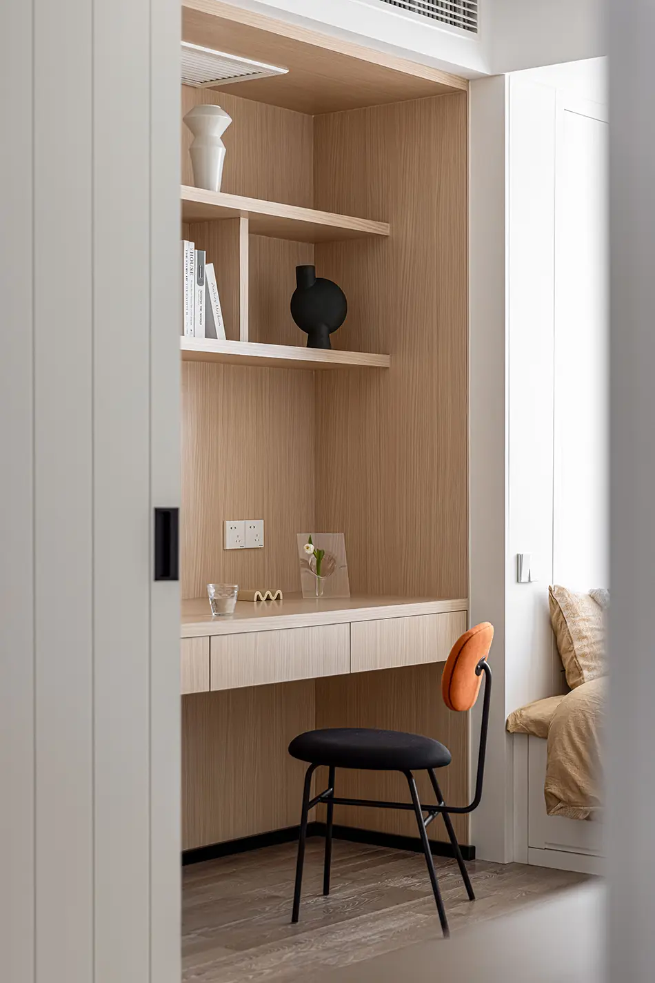 客卧的设计同时兼职书房功能,可开放可独立,灵活多变,全屋定制让客卧满足工作/学习/休闲/睡眠等多种功能,提升空间利用频率,一次满足多个家居需求。