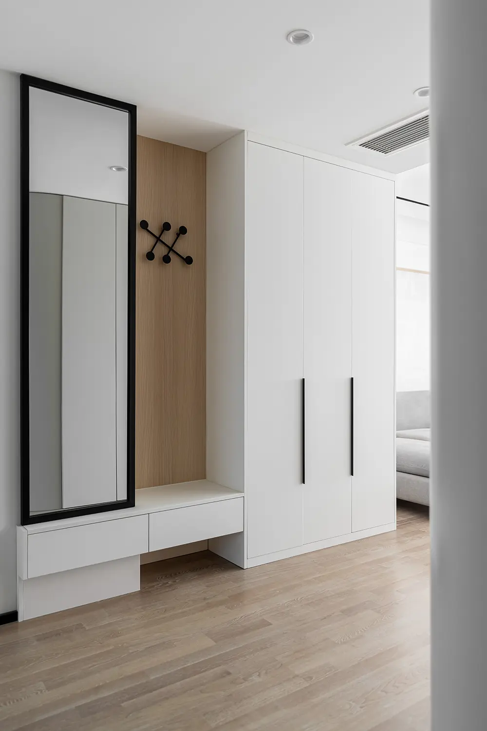 衣帽间与睡眠区设计悬浮收纳柜满足收纳需求,让空间更有呼吸感。