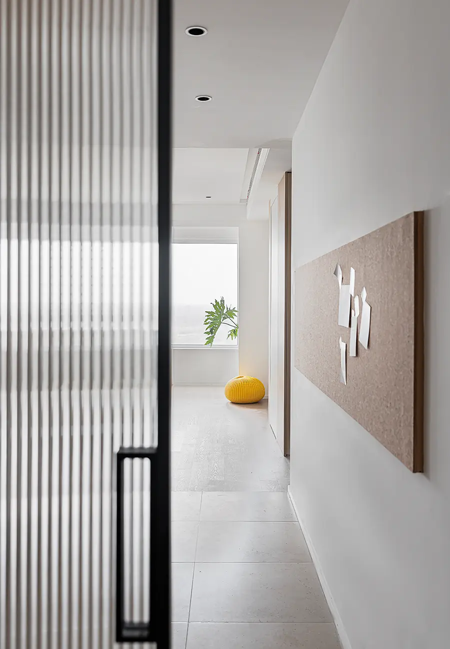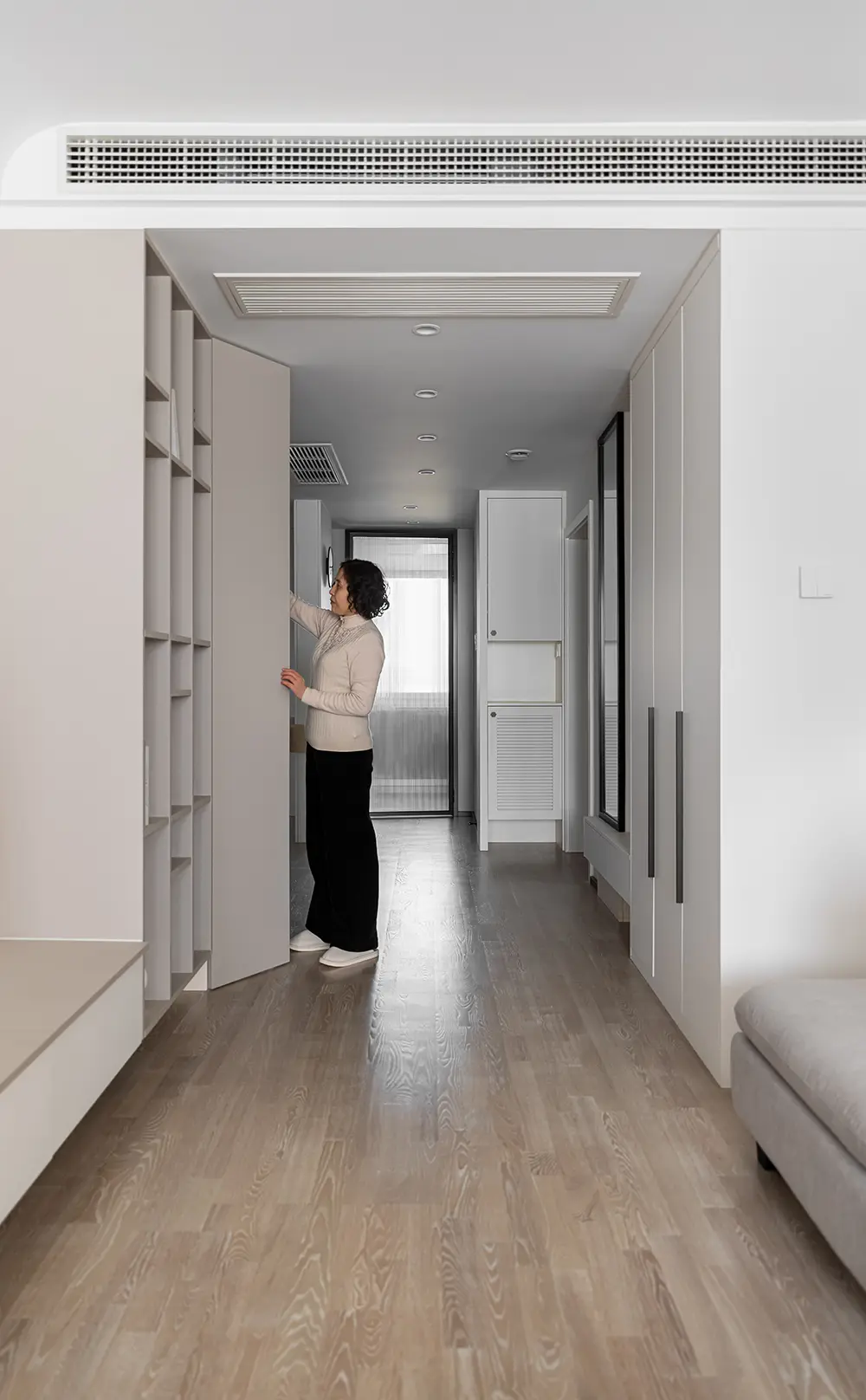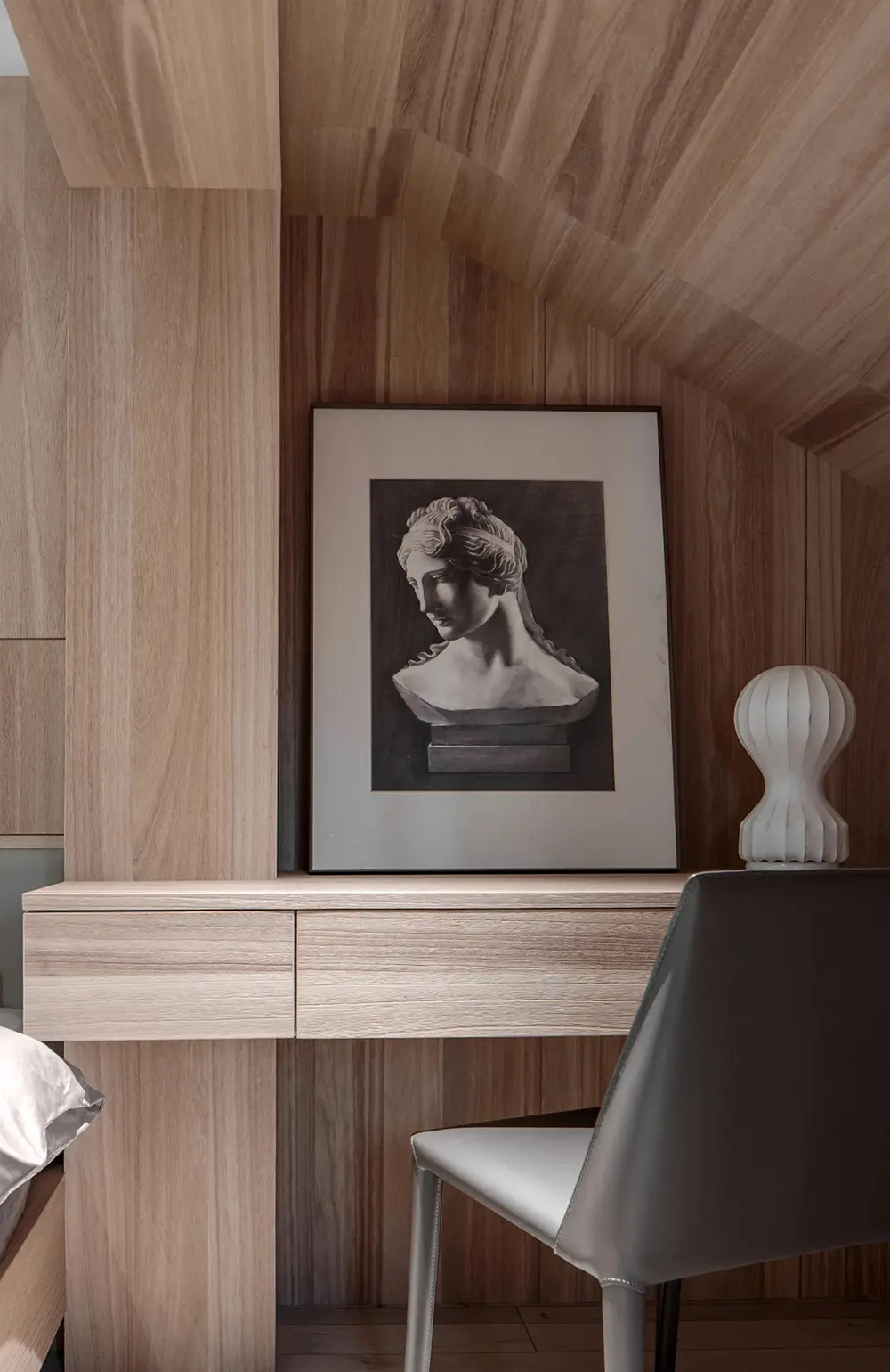 衣帽间变成了一个多功能的空间,将收纳、办公、通道整合统一,消除了传统衣帽间的体块感。