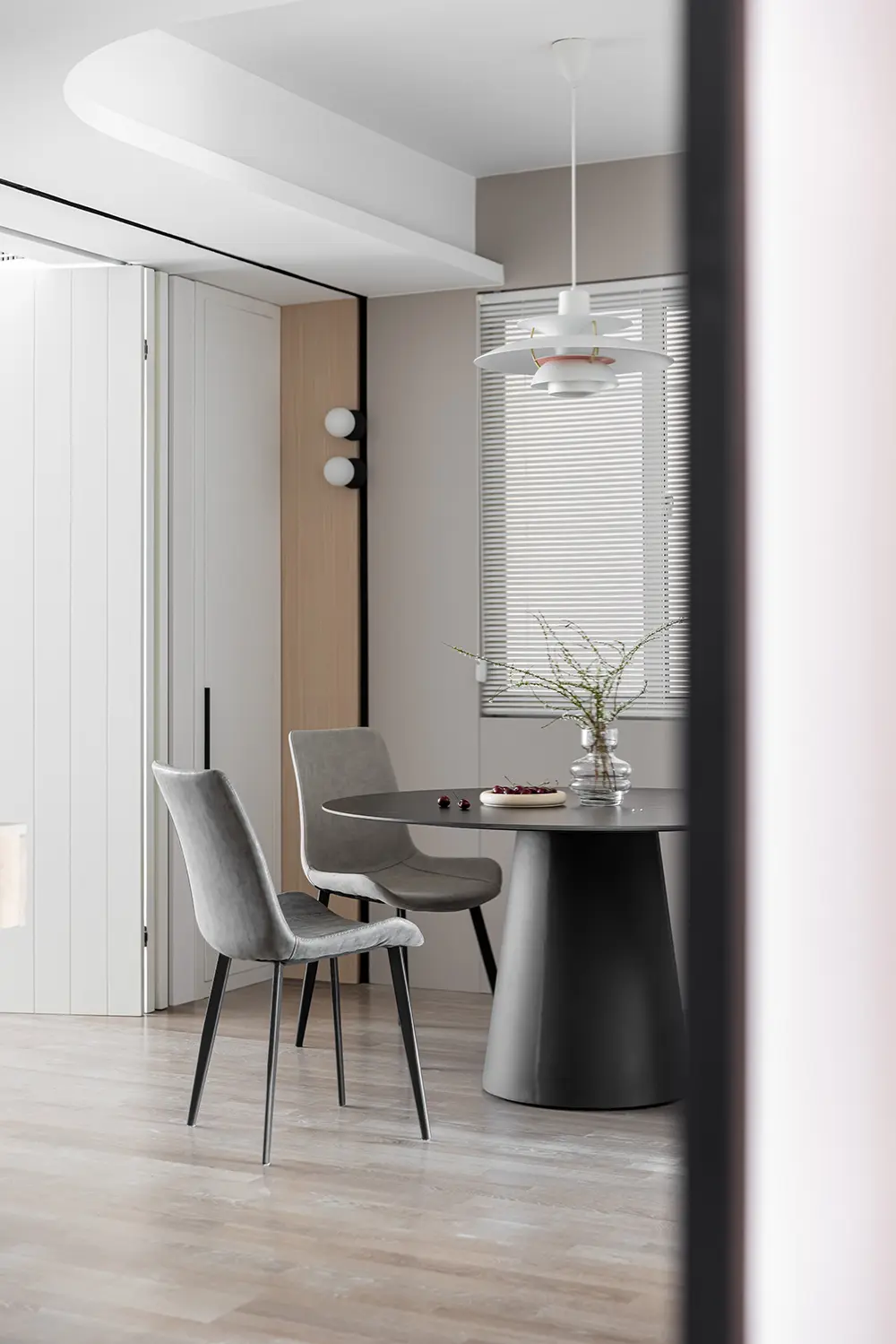 深浅搭配的用餐区,带着时尚的精英气质,呈现的出来是设计师的内涵与品位,搭配现代感强烈,精致奢华。