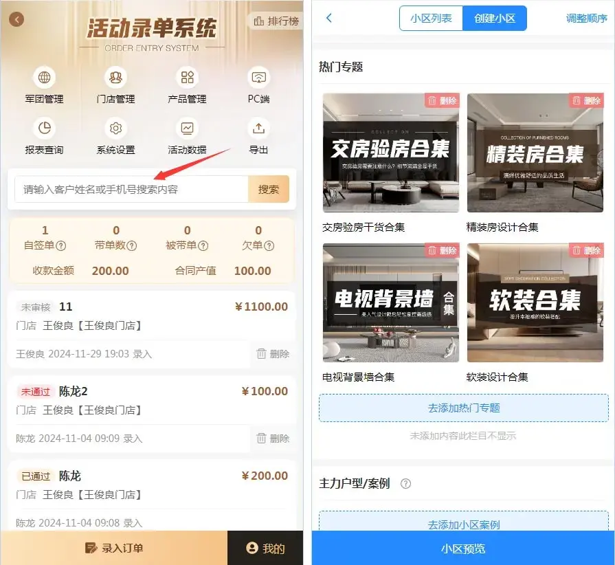 2:录单系统列表页增加搜索功能,可以根据客户姓名和手机号进行搜索