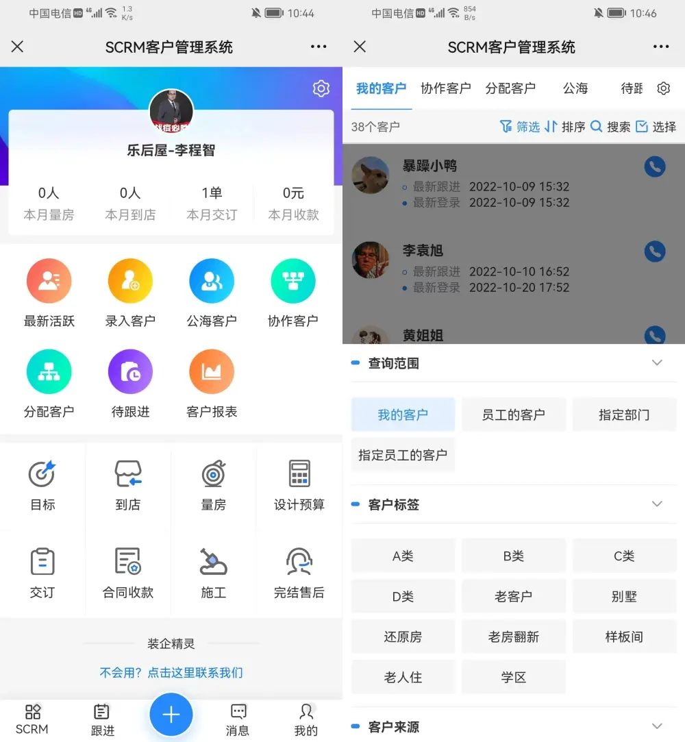 电脑端页面和scrm数据看板上线,数据看板,实现从客户到员工数据全覆盖,帮助装企提升管理效率;SCRM客户管理系统电脑端、手机端互通,微信扫码一键登录,随时随地多终端管理。