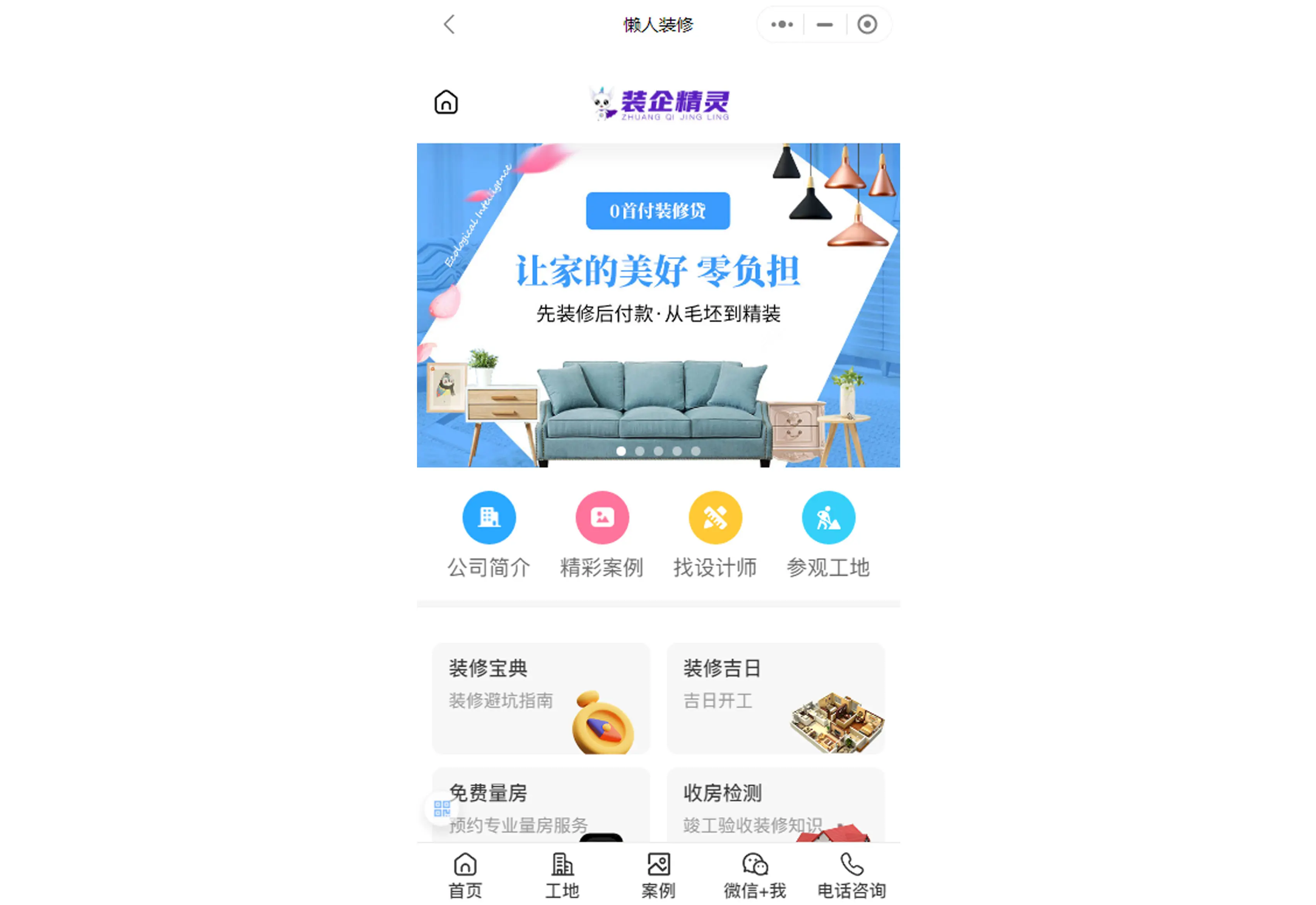 每个企业都拥有的自己的小程序微官网,与装企精灵数据互通,高效展示案例、工地、品宣,助力品牌营销。