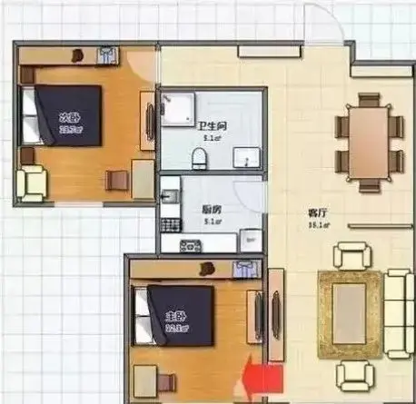 房间则要比客厅小,代表夫唱妇随、家庭和谐,夫妻能互相配合,互相体谅。如果房间与客厅大小一样,就有“争权”的现象,也就是太太反对先生的意见,并僵持不下。现代社会女权至上,如果女人有能力决策大小事务,而先生心甘情愿配合且佩服,这也无可厚非,只要能增进家庭幸福,应该乐观其成。