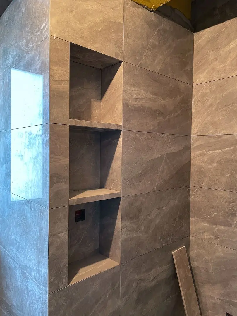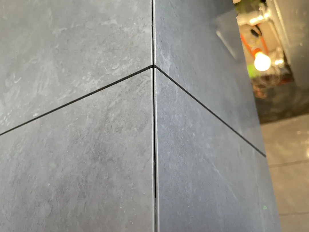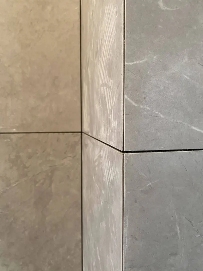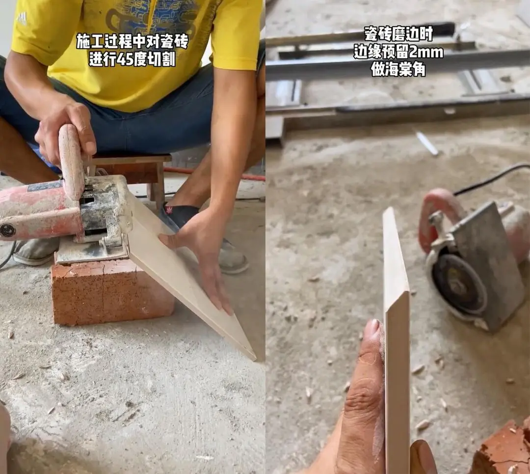 标准做法就是用海棠角的处理方式,将瓷砖的边缘磨成45度角,但不会磨到底,会预留一定的侧边面,大约2-3mm,这样可以增加侧边口的面积,减少绷瓷的可能。侧边漏出的变口,后期可以通过美缝来遮盖。
