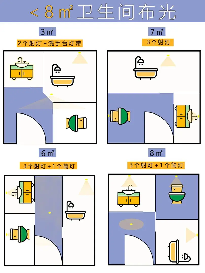 给大家从卫生间的布灯原则、平方数给大家详细分析要怎么布灯?