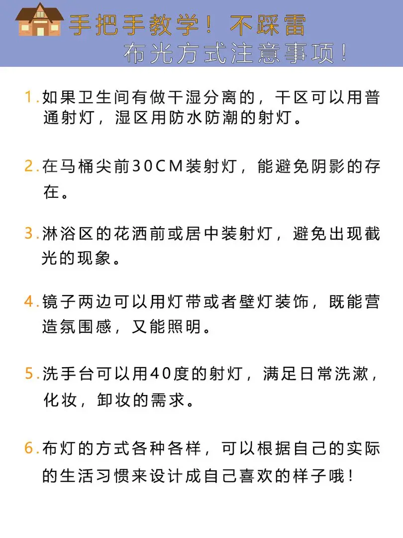 首页 > 装修常识 > 手把手教你卫生间14种布灯,装修不踩雷