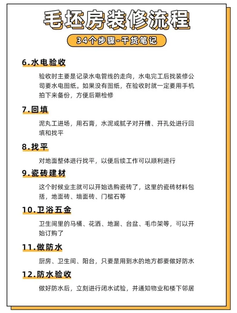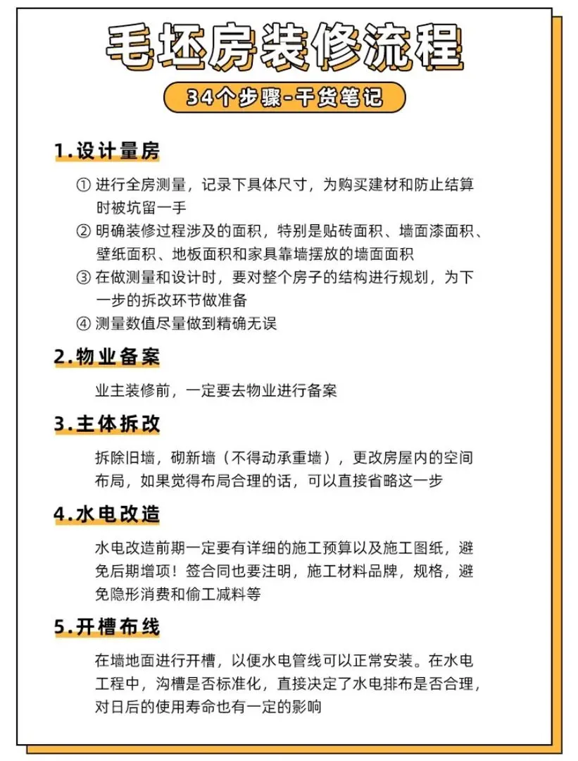 最全毛坯房装修流程,34个步骤必须记住!