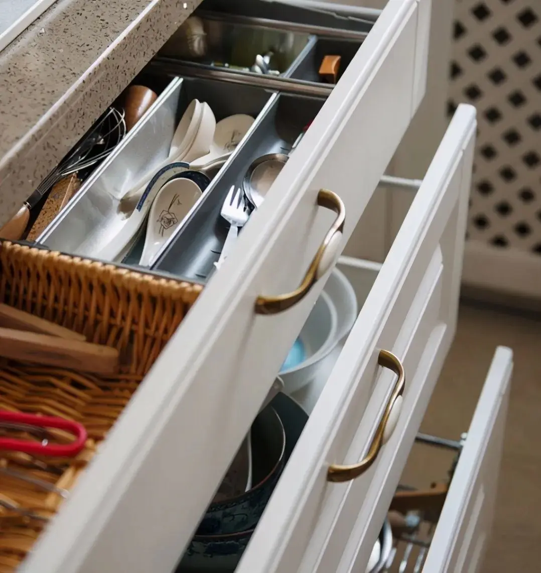 普通的平开门每天找东西还要蹲着钻进去翻找,而抽屉真的比平开门要好用,不过抽屉的尺寸一定要设计到位,否则同样很鸡肋。