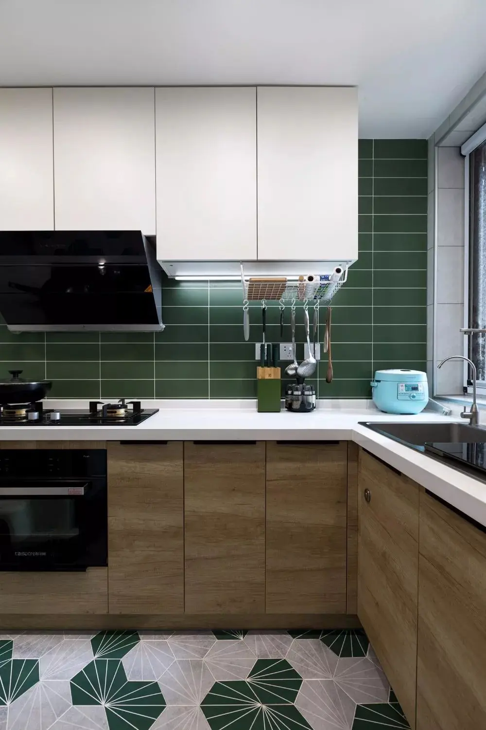 最下层适合放重的大件,比如锅具,中间放碗碟,上层则是放小件的勺子等。