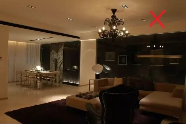 正确做法:可以试着多加点其他灯,像是落地灯、阅读灯或是崁灯。也可以选择较简洁的沙发座椅、椅脚较高的椅子,而颜色则选择较中性的颜色较恰当。