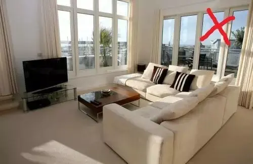 正确做法:还有电视最好不要靠近或是面对窗户,否则会对眼睛有害,另外电视跟沙发的距离则是取决于电视萤幕的大小,3~5个对角线为最佳。