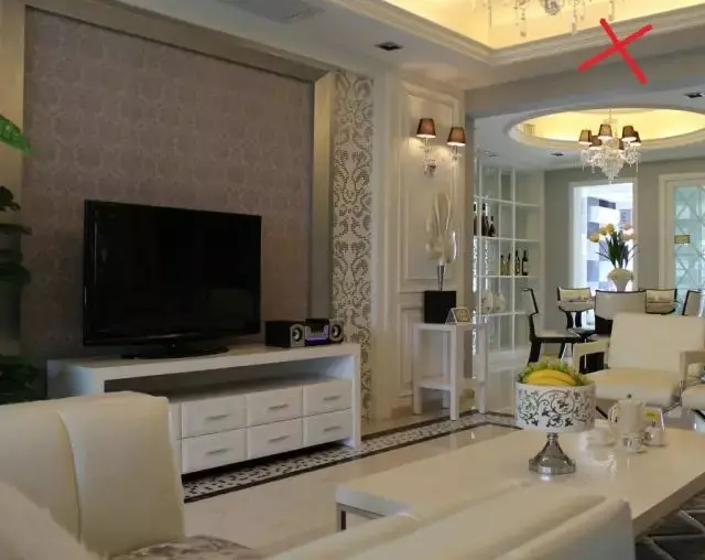 错误示范:电视的背景墙尽量是一面空白的墙,不要大空间的电视柜,悬挂在墙壁上最好,不占空间也十分美观。