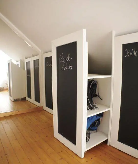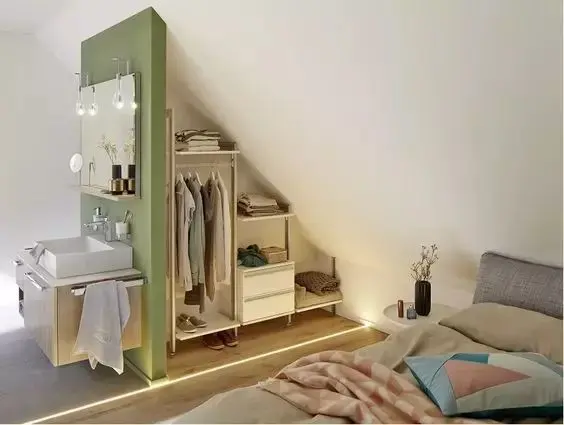 加上推拉门、平开门,或者直接开放式的设计,利用好阁楼的倾斜角,把收纳分类给做好,这样才能看起来更加的整洁。