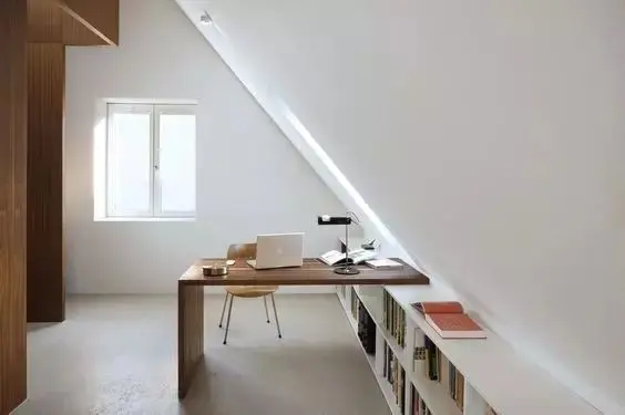 空间比较大的,就可以改成其他的功能间,比如书房,阁楼只要有一个小窗,然后设计成白色为主,就会非常的明亮,看书学习也更加的安静。