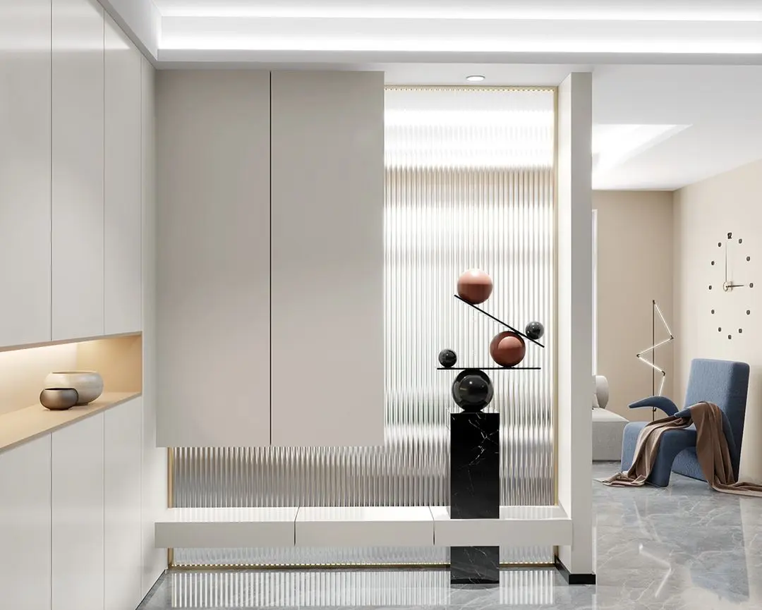 现在流行用玻璃门取代装饰画去做玄关的设计
