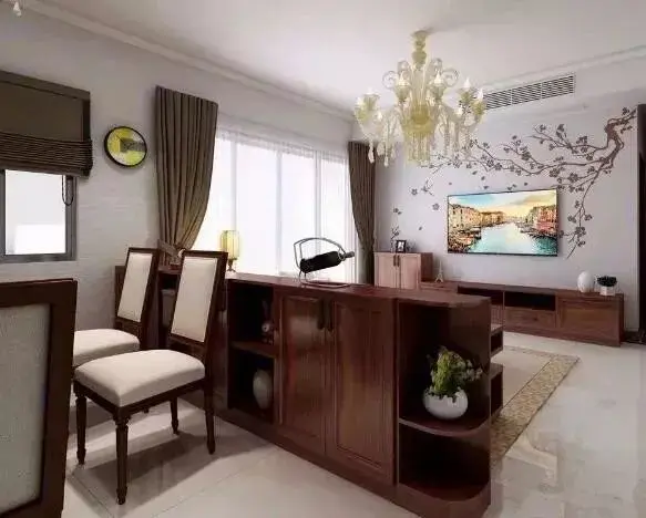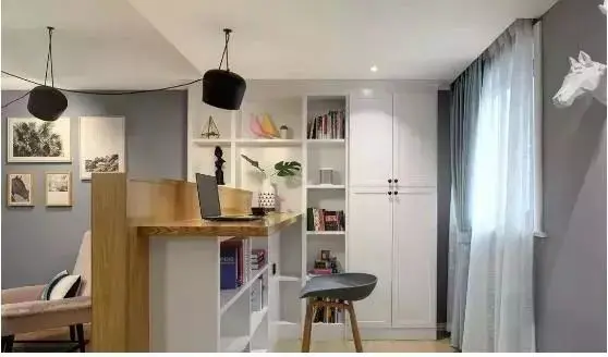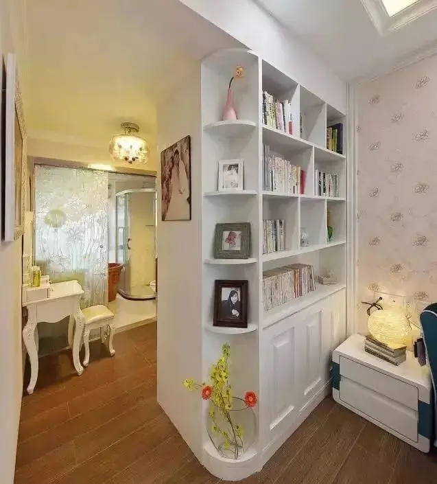 4、隔断柜:隔断不要再用墙了,墙面会遮挡光线又占位置一点不实用,不如装成隔断柜,一样有隔断效果,同时还能增加收纳空间,多个柜子就能出收纳空间,让生活物品更好的存储在柜中。