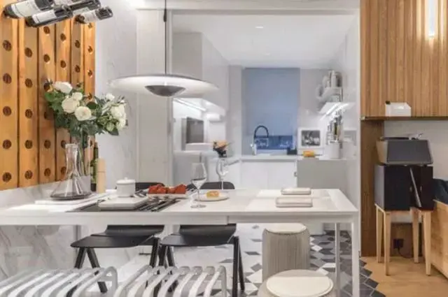 餐桌选择了可折叠的款式,当家里来客人时,可以将餐桌延长,实用性超强。