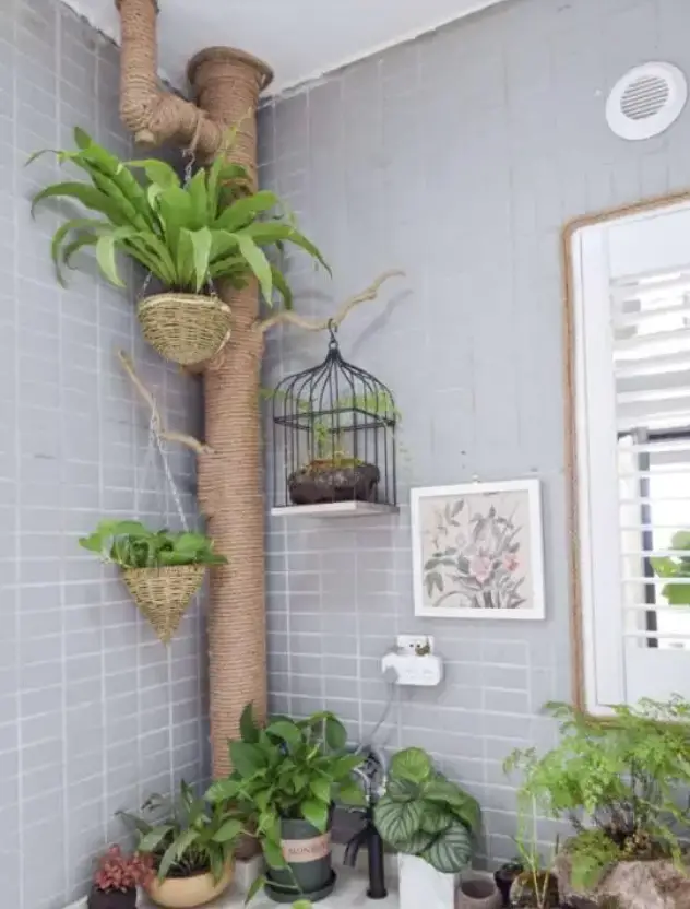 把阳台的管道用麻绳包裹起来好像是这两年比较火的一种做法,我看到过好多小姐姐选择这样的方式去装饰阳台,然后再从阳台上稍微打造一下,弄个地摊、秋千、小盆栽之类的,打造成一个阳台露营风的风格,这个方式其实是挺好的,尤其是对于工作了一天的我们,下班回家坐在阳台上喝喝茶,休息一下,也算的上是一种不一样的感受。