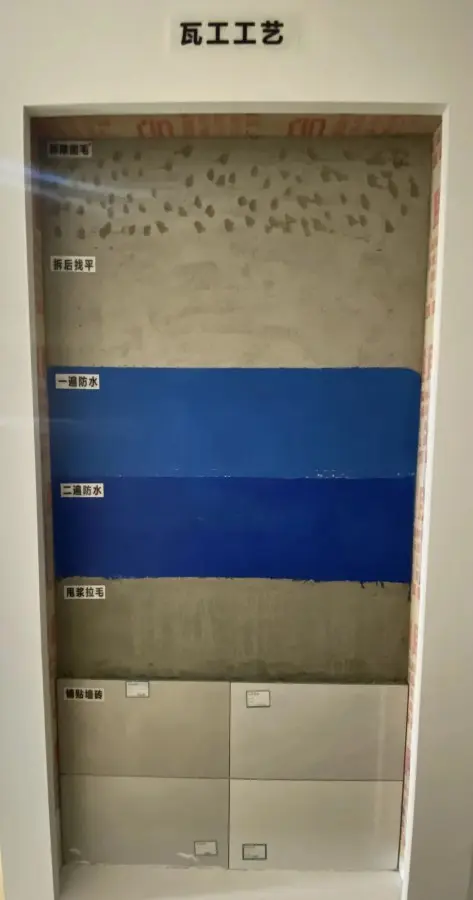 ②防水要做两遍,等第一遍彻底干透后再刷第二层,卫生间墙面也要做防水,干区30cm左右,湿区至少需要1.8m。