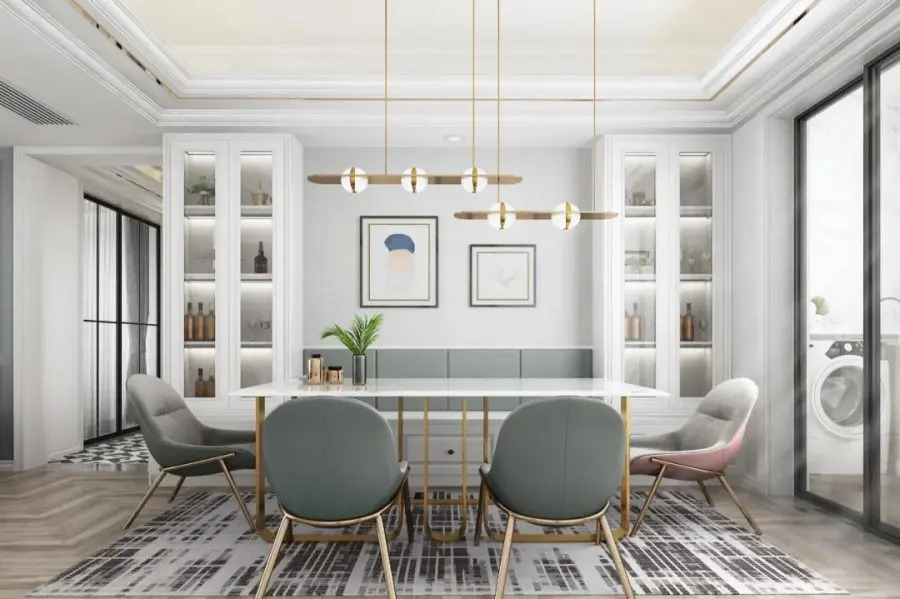 主们经常会出现的误区是,购买灯具觉得好看就下手,没有考虑与家具是否能配上。除了款式、风格外,很多人的家居餐厅会出现餐桌与灯具不在同一中心点上,餐桌没地方挪,等也固定不能动了。
