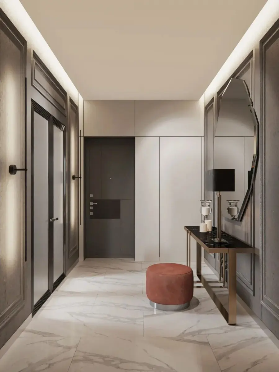 如果走道无法再安装吊灯的话,考虑在走廊的角落安放落地灯,尽量把走廊的装饰和杂物清走,让走廊更加宽敞。