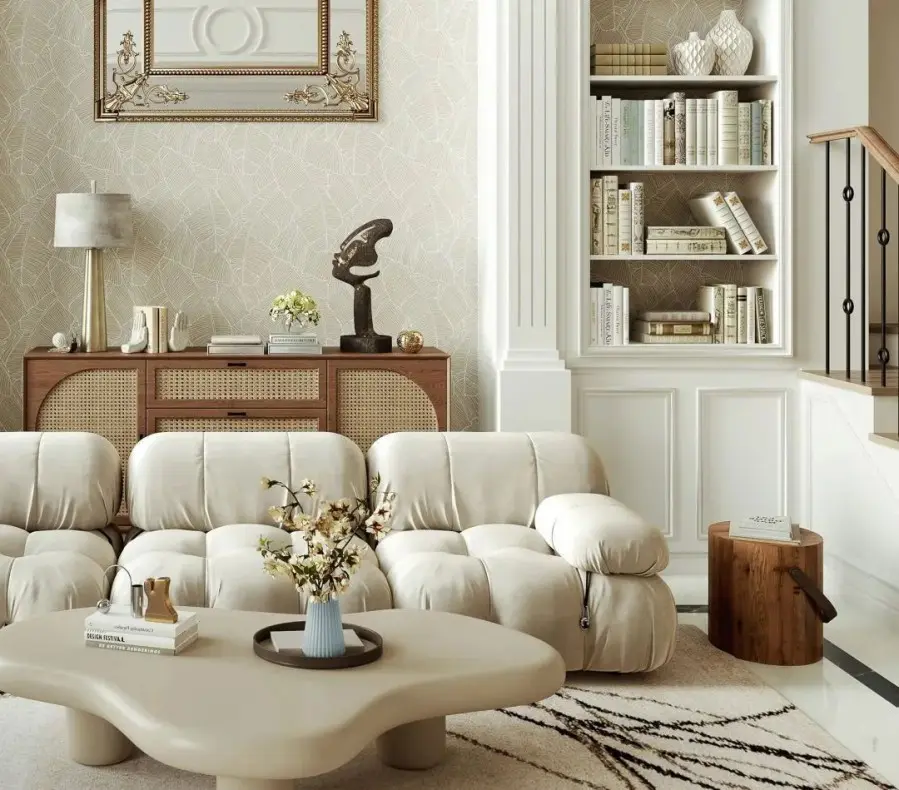 女屋主喜欢浪漫、时尚的居家新体验;男主人非常随性;因此设计师以“家”为中心,大胆改造,融入各种元素,以米白色为主基调,通过团队的合作装修出这套法式混搭别墅。