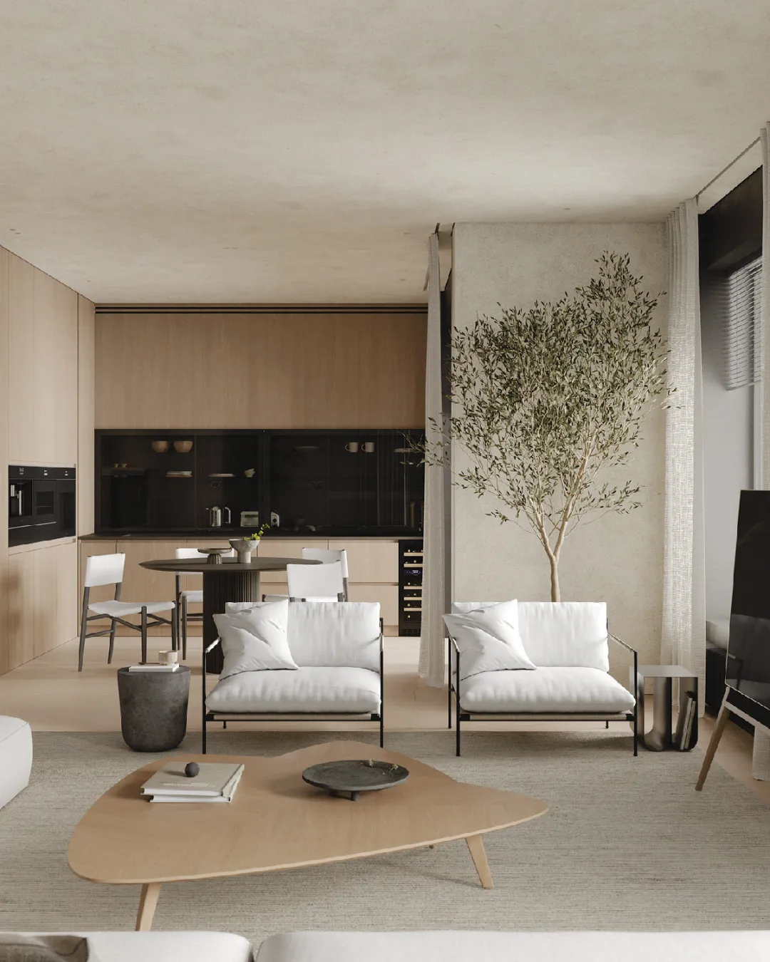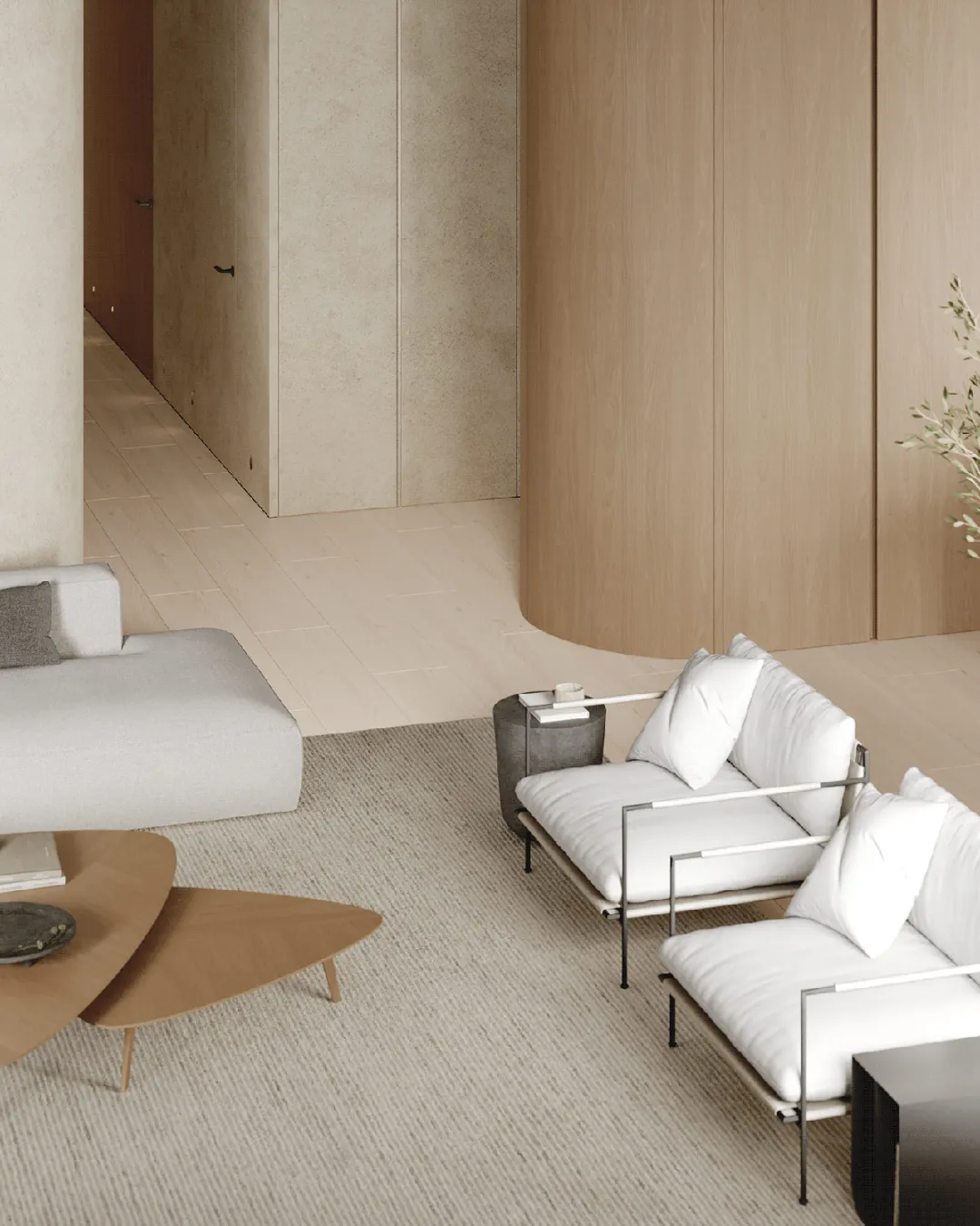 面积200㎡,结合了东方元素与本地元素的,通过最简洁的设计语言表达,细腻的纹理与色调和谐而统一,展现极致的现代美感,东方的舒适与惬意。