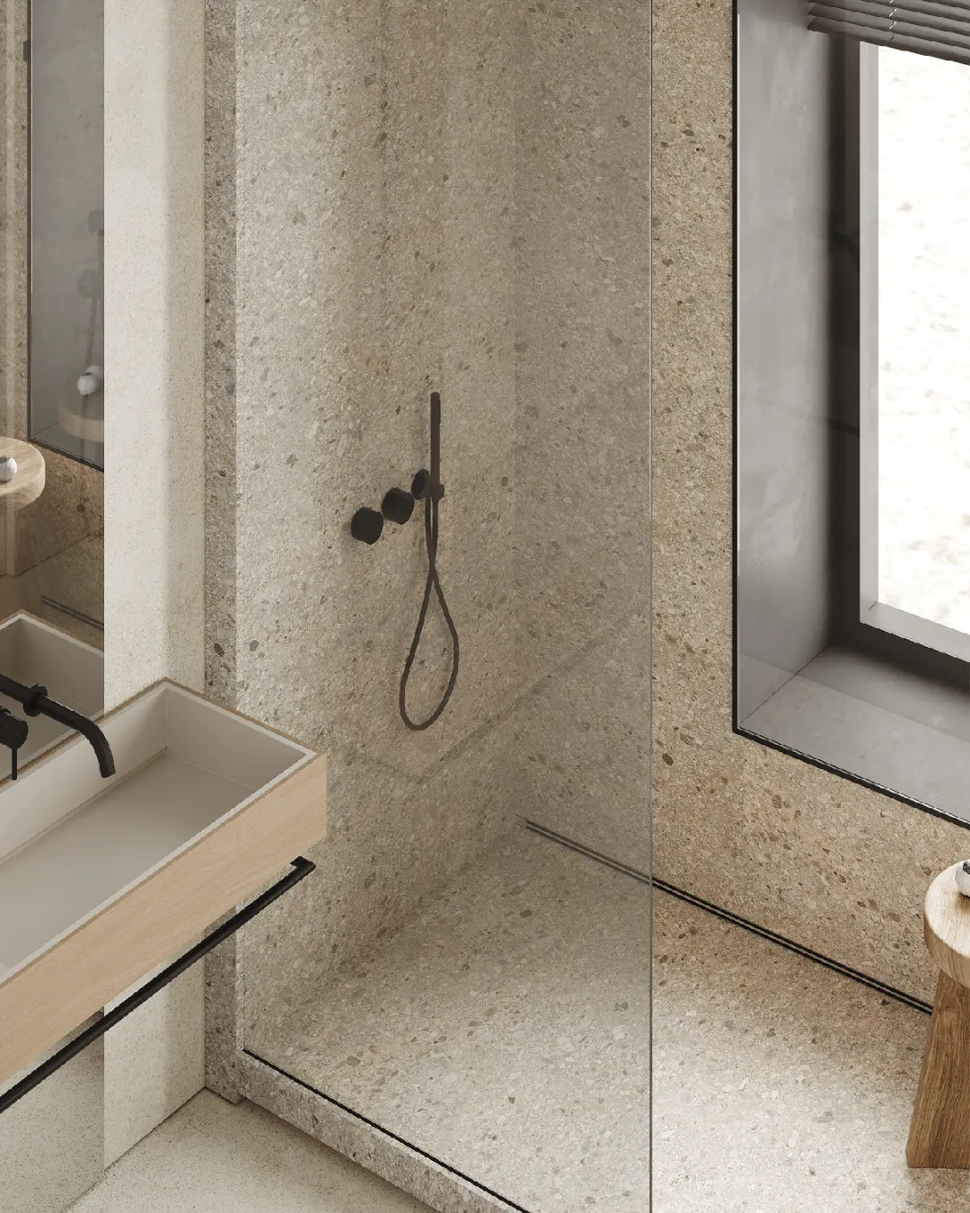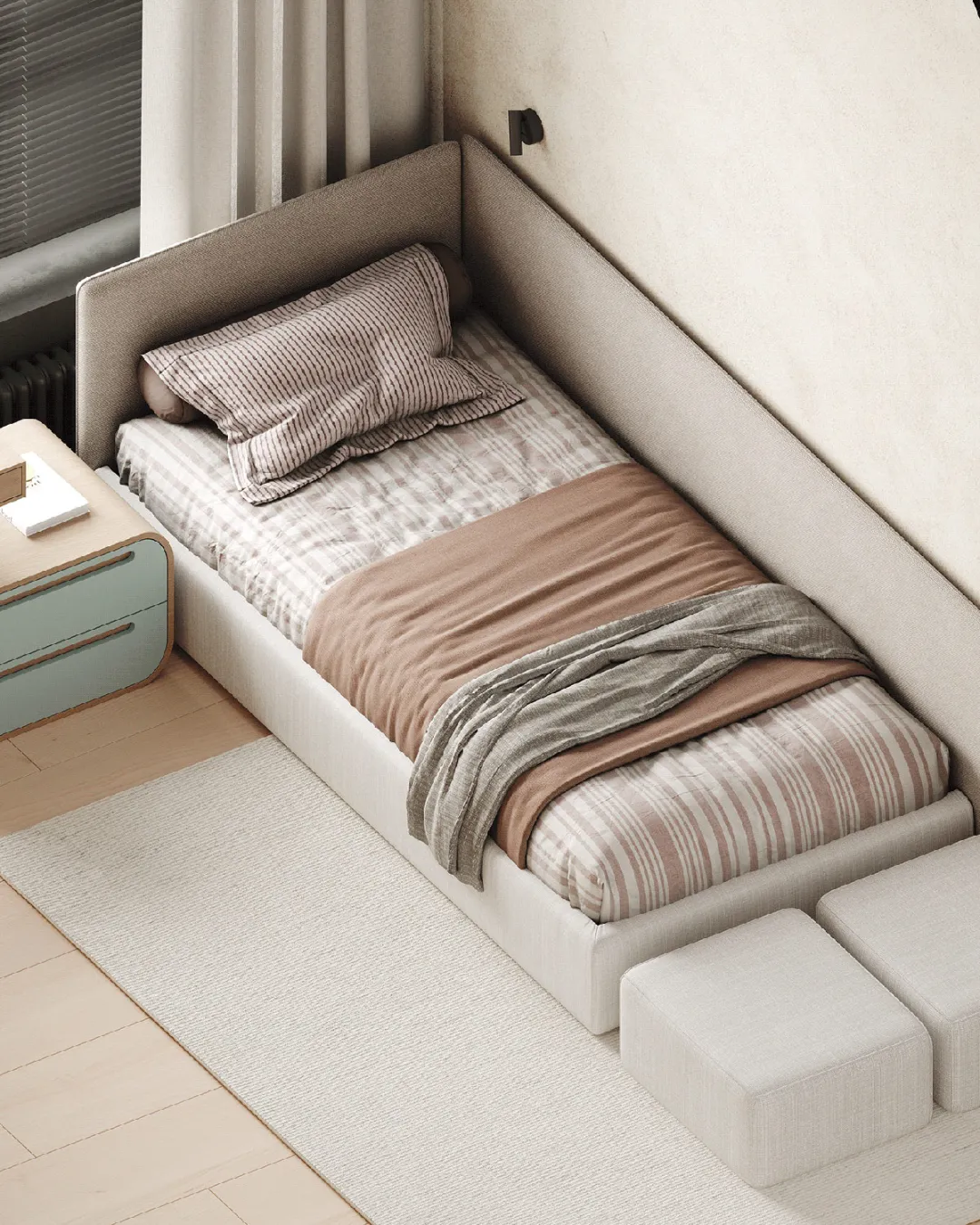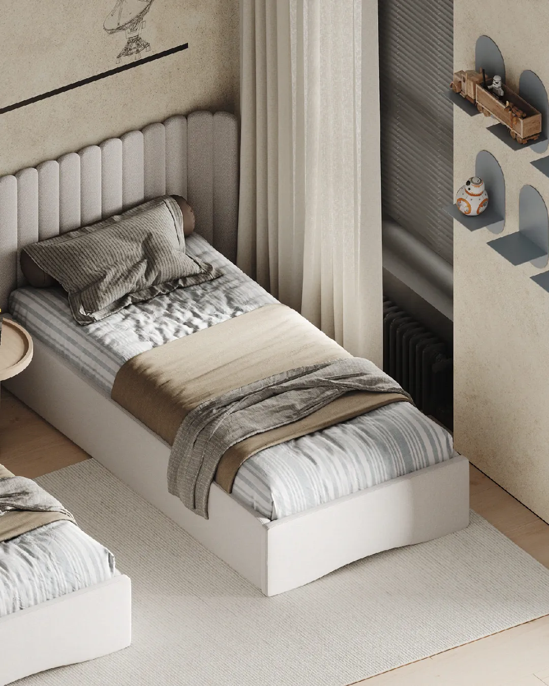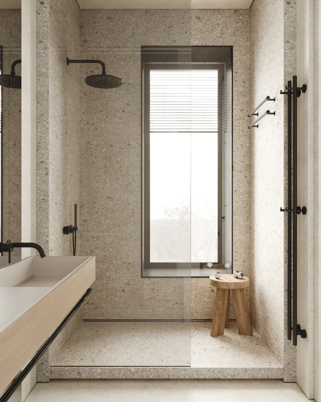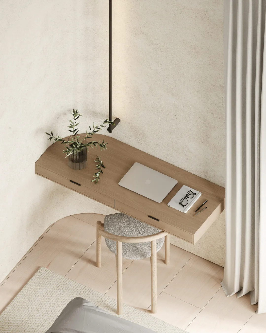 开放式的室内空间色彩柔软,光线充足,黑色元素的点缀为中性环境增添深度和光泽。客厅采用围合式布局,严谨中透着轻松与舒适;厨具和电器利用中段橱柜空间进行收纳设计;卧室延用客厅的设计格调;儿童卧室明亮、清新、时尚,配有定制的儿童书桌设计和装饰性搁架墙;亲子房是孩子们休息的地方,拥有自己安静的工作空间;浴室灵感来自现代梳妆台和大胆对比的黑色装置。