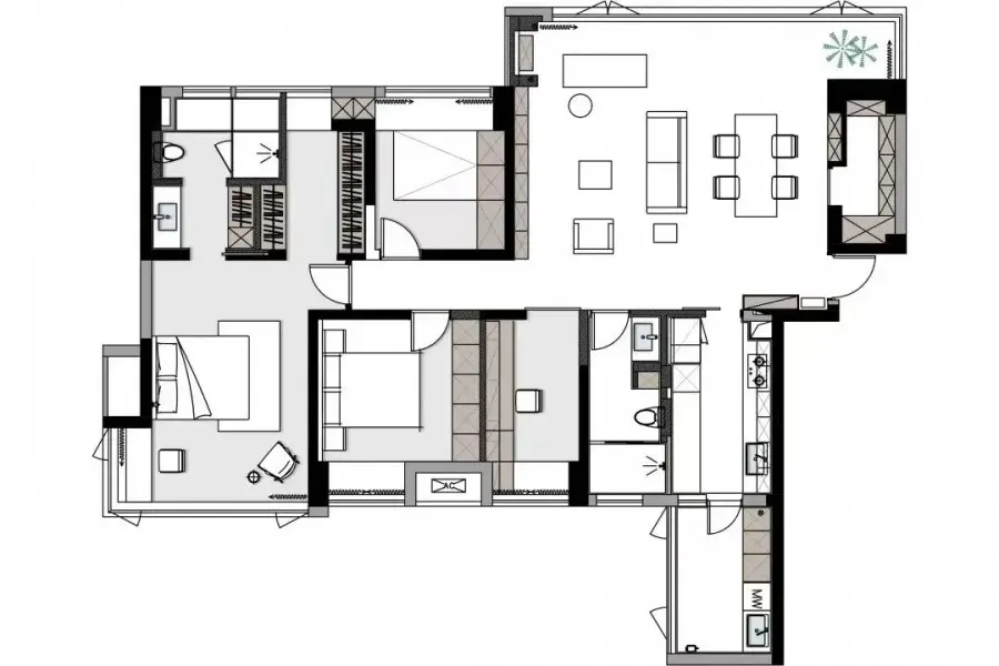 ▲ 整个公共区域同样看不到除家具陈设以外的物品,让空间保持最佳的整洁清爽状态