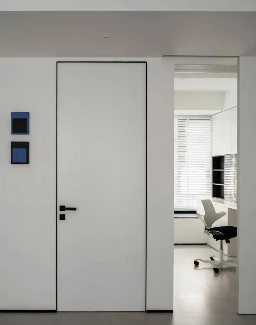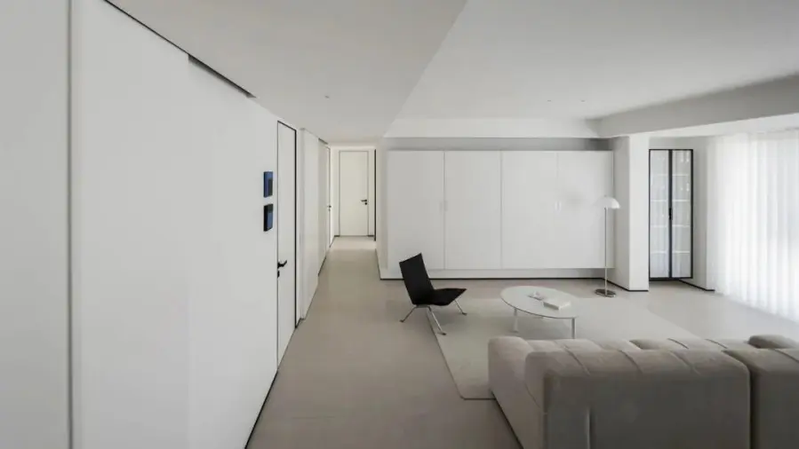 ▲ 走廊一侧包含室内门,统一为纯净的白色,让整体的视觉感更加和谐
