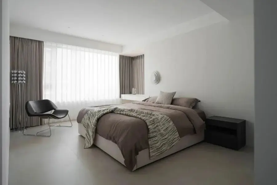 ▲ 主卧将原始的布局进行改动,衣帽间与主卫排列在进门右侧,做到功能的划分,同时寝居空间获得宽阔舒适的面积,选择智能床垫,带来更舒适的睡眠体验