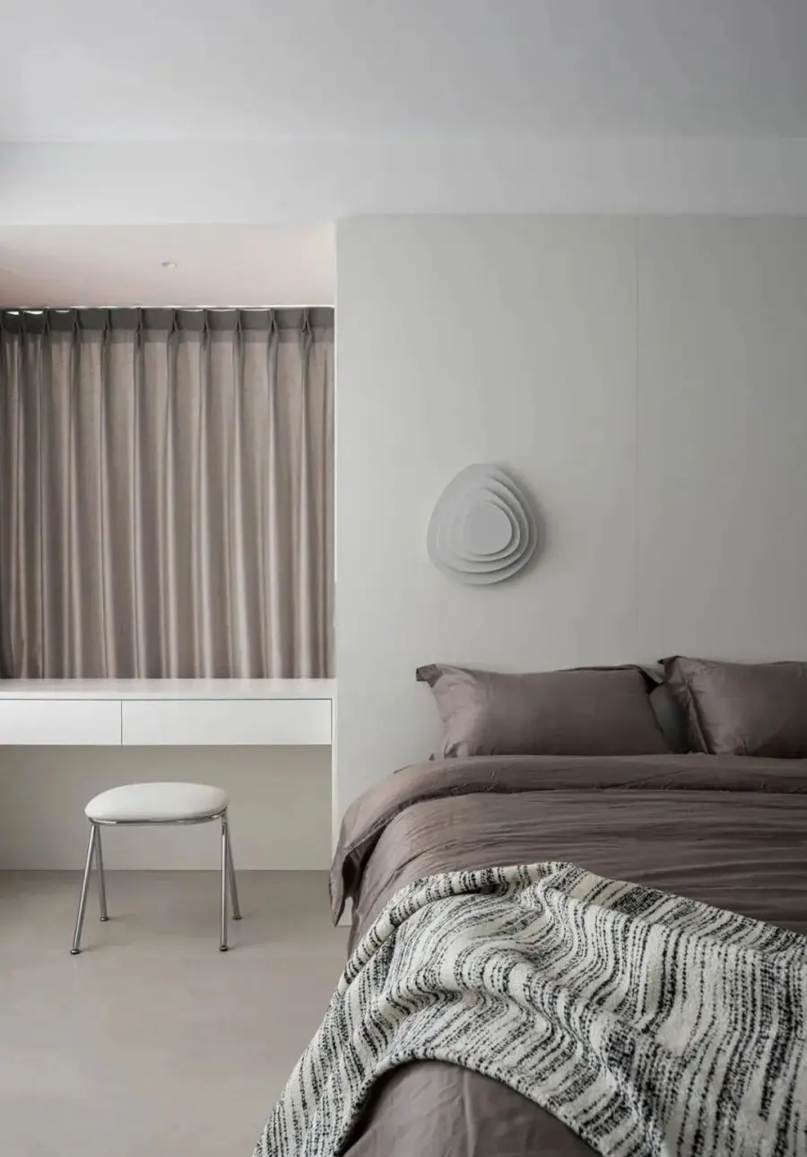 ▲ 床头靠近窗户一侧,打造悬浮梳妆台