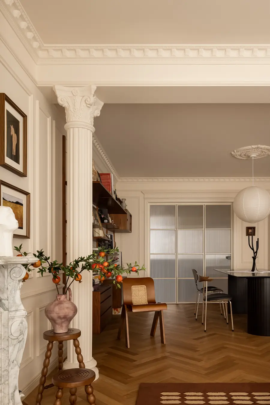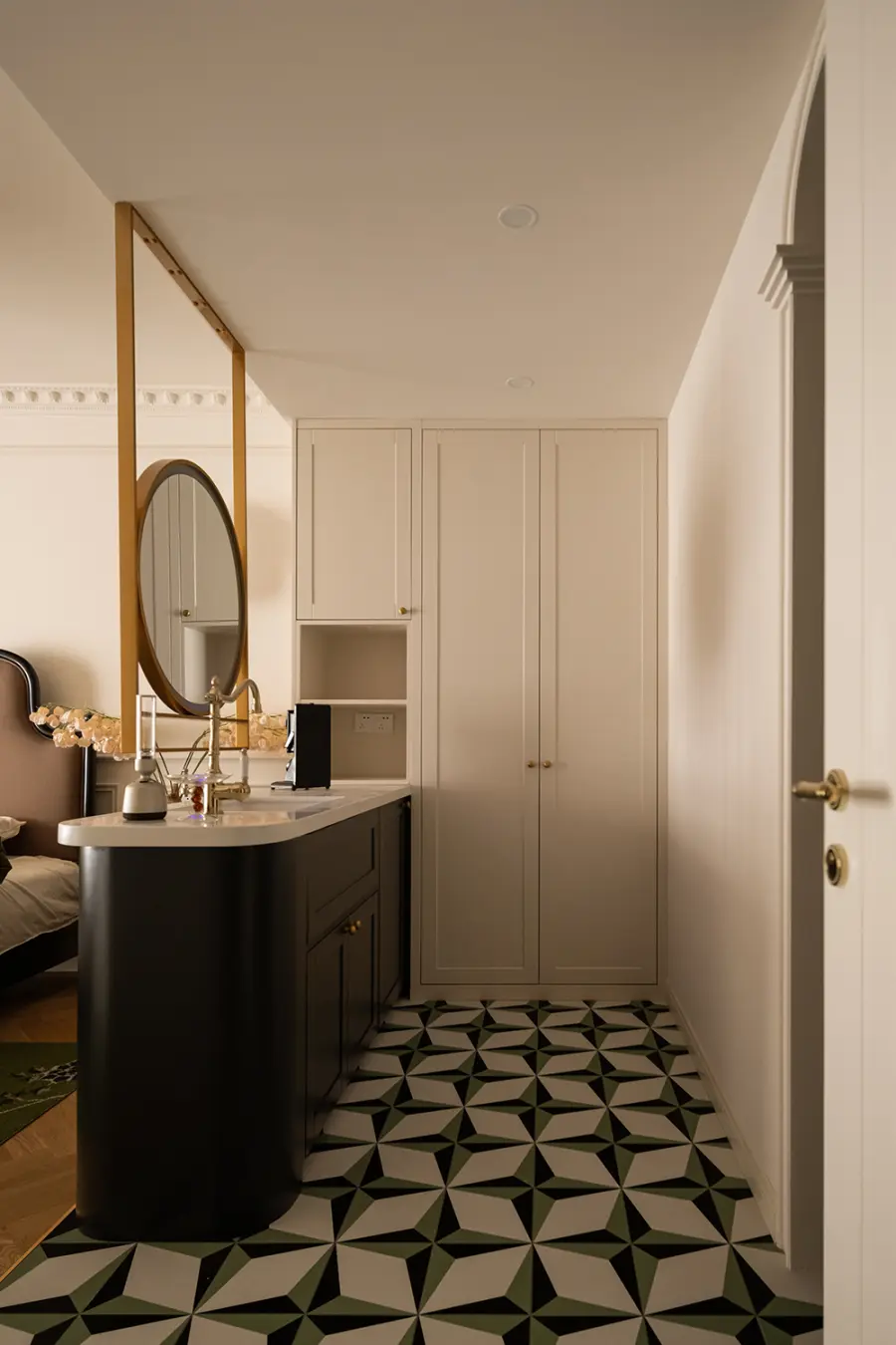 拱形的入户玄关使得空间更加流畅和优美,搭配着精致的法式装饰细节,不仅给归家时刻营造出一种仪式感,也让法式氛围就此渲染开来。