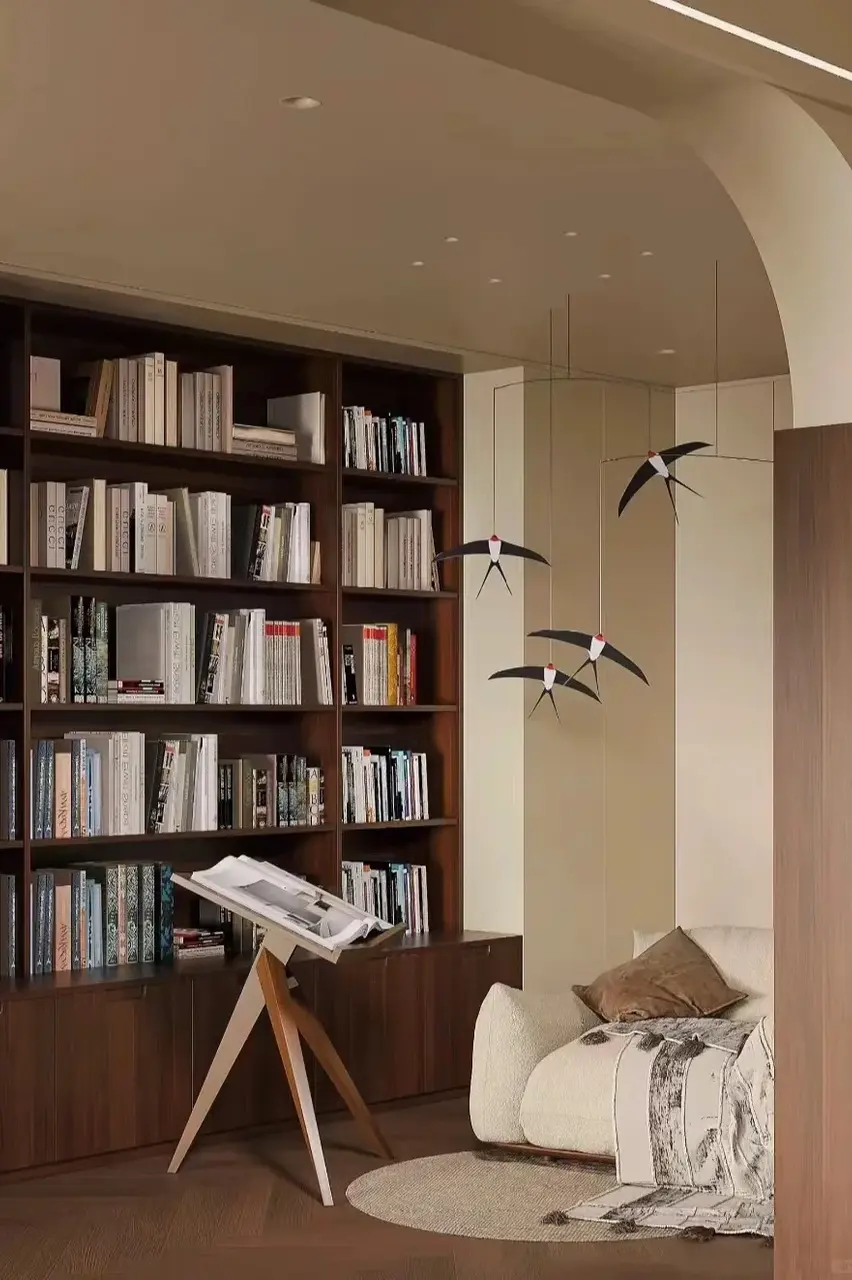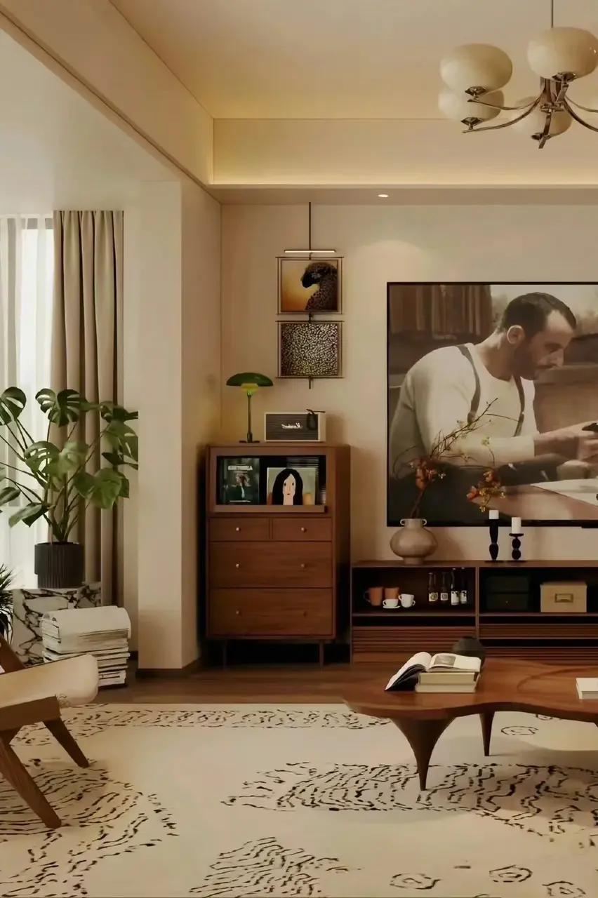 延续至今,中古风更像是古典审美与现代功能的融合风格。在色彩上,中古风多采用金色、棕色、米色等暖色调,并使用胡桃木、柚木、皮具等材质的复古家具,既有年代感,又是风格化的现代陈设。