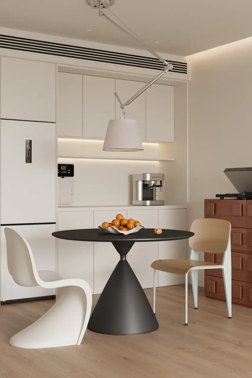 极简风格摒弃了繁琐的装饰和多余的元素,追求空间的纯净和功能最大化。通过简洁的线条和单一的色调,突出空间感和通透感。