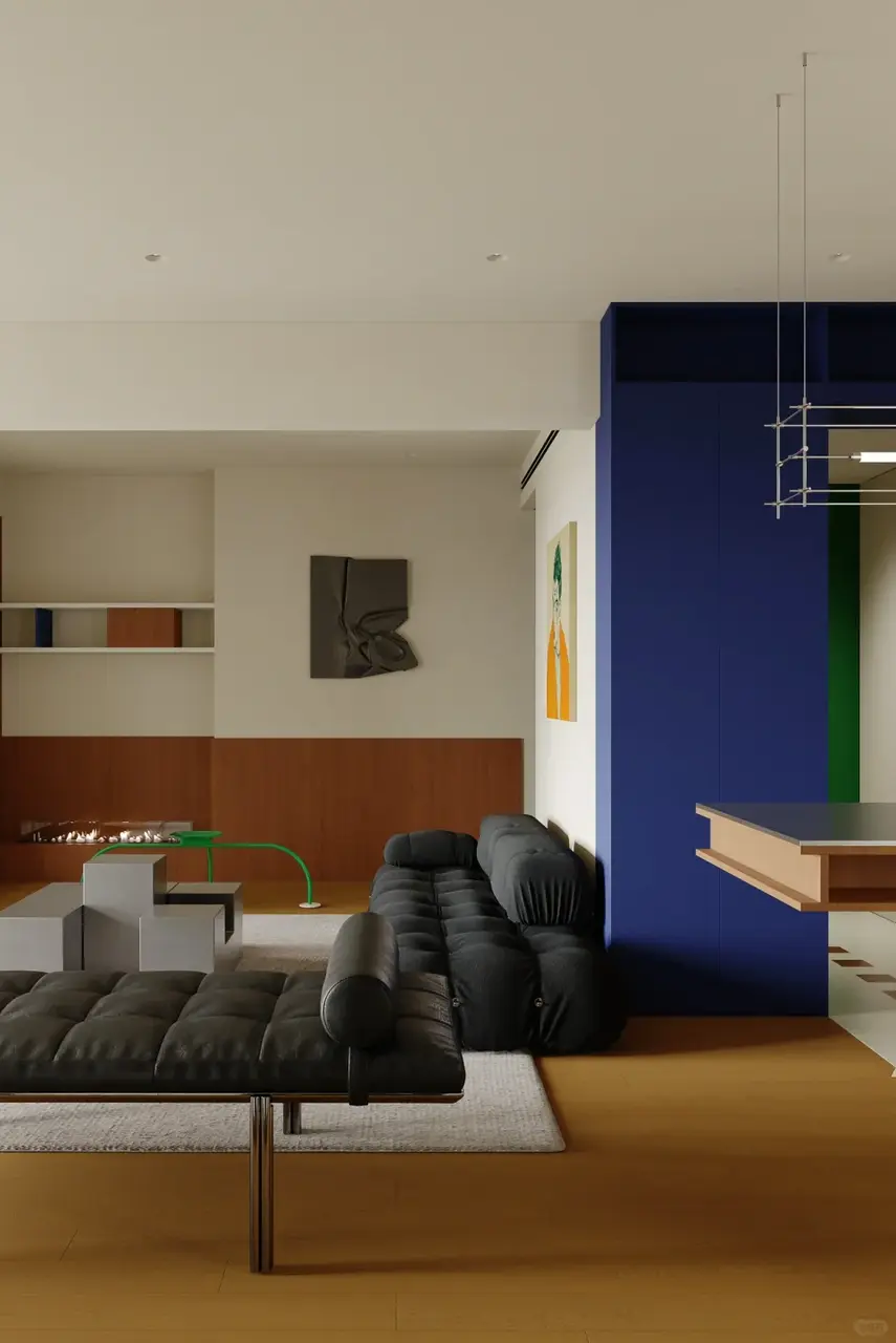 不同于“黑白灰”的惯性用色思维,包豪斯受荷兰艺术家蒙德里安的影响,大胆启用鲜亮的红黄蓝三原色作为点缀。
