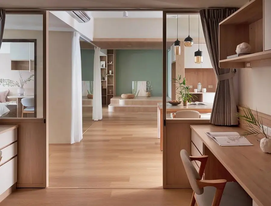 巧妙的空间布局满足了多样化的兴趣和需求,每个人都能在这绿意环绕的家中找到自己的放松与享受之处。